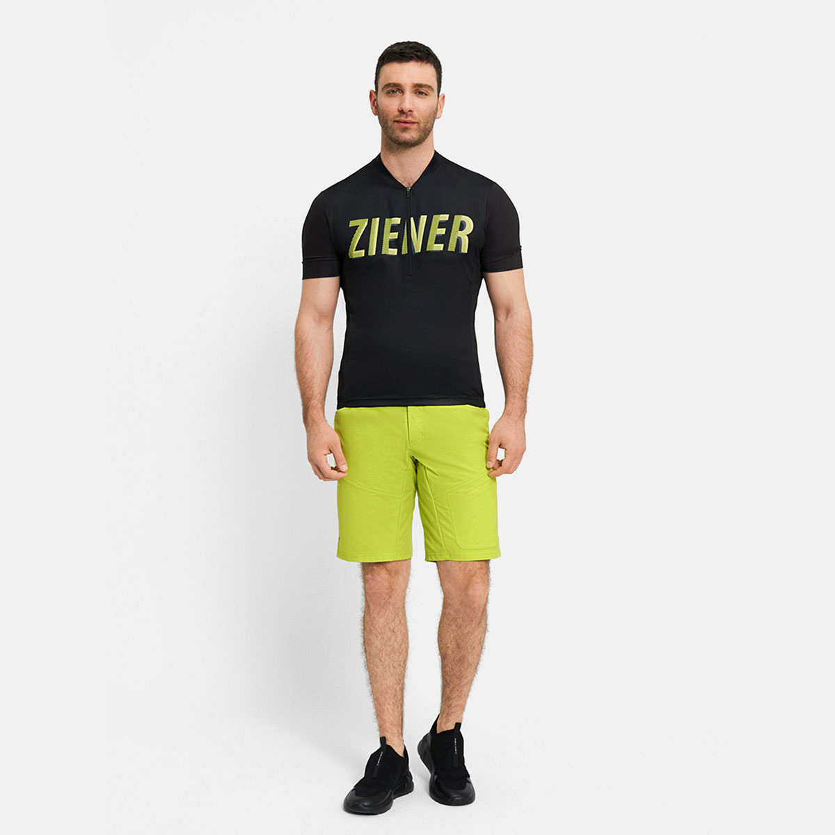 The functional, elastic ZIENER men's bike shorts NELAT-Z X-FUNCTION MAN are flexible thanks to the 4-way stretch material and adapt perfectly to all movements. The waistband can be adjusted with a Velcro fastener and has belt loops. The shorts have two hand pockets and a zippered leg pocket for plenty of storage space. The inseam length is 28 cm. The attached inner pants have an X-FUNCTION pad for seamless, smooth cycling with great freedom of movement on all routes.