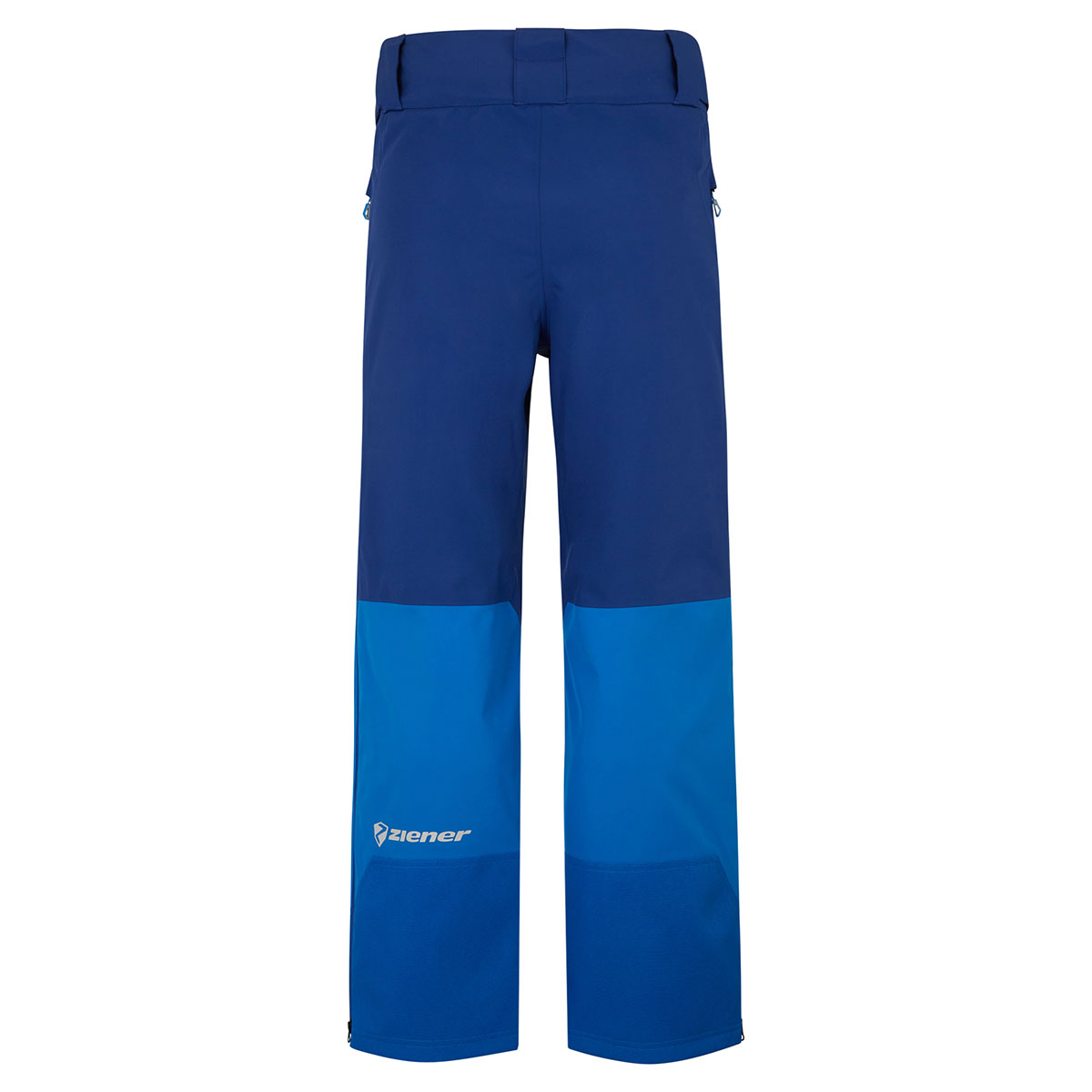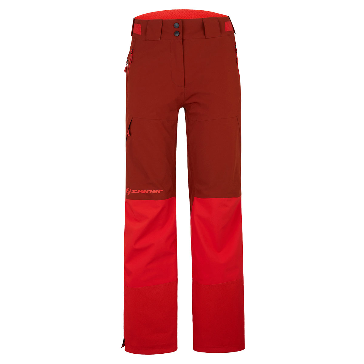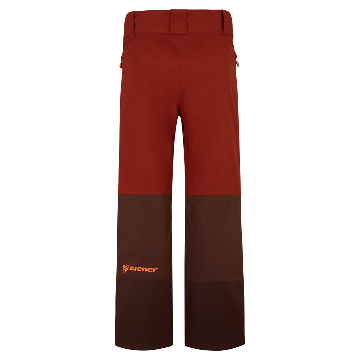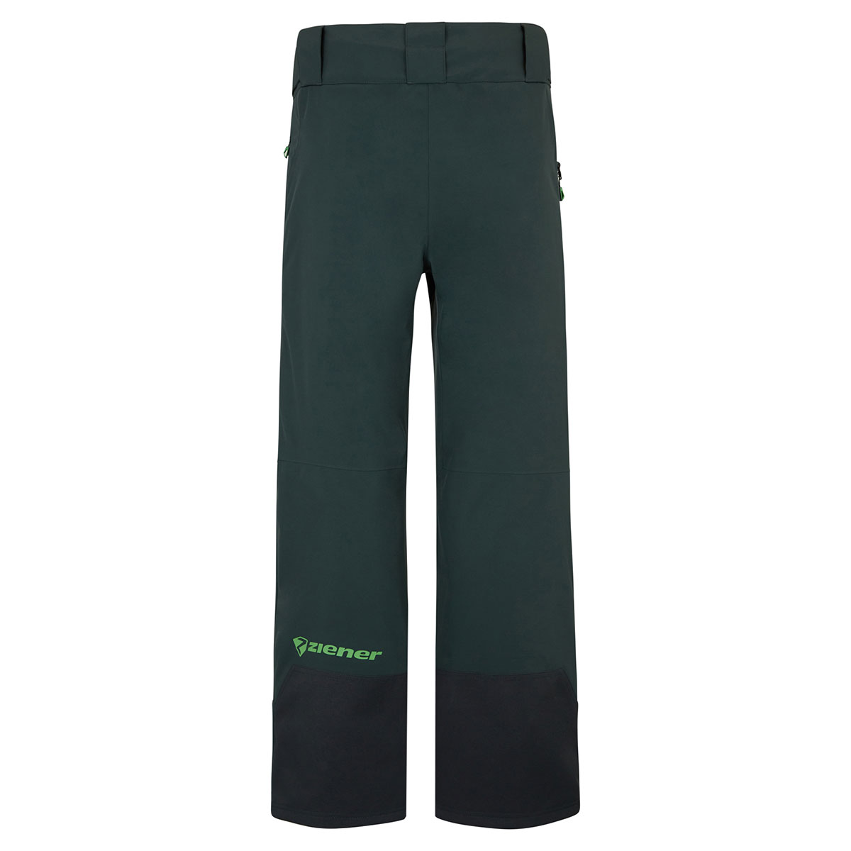 The highly functional, unpadded ZIENER TEAMWEAR TAMIR VENT-LONG-ZIP-Z MAN pants feature a warm inner lining. They are equipped with the breathable, water- and windproof ZIENER AQUASHIELD® membrane (water column 20,000 mm/breathability 20,000 g/m²/24h), which ensures a warm and dry climate. The recycled, elastic 2-layer material has a PFAS-free impregnation. Suspenders or a belt can be ordered as an option and can be attached to the belt loops provided. A long side zipper provides ventilation for optimal airflow and also makes it easy to put on and take off the pants. Reinforced edge protection and an adjustable snow guard in the pant hem round off the functional features. The side zippers and a zippered pocket on the pant leg provide storage space for smaller items. All seams are taped and completely waterproof.