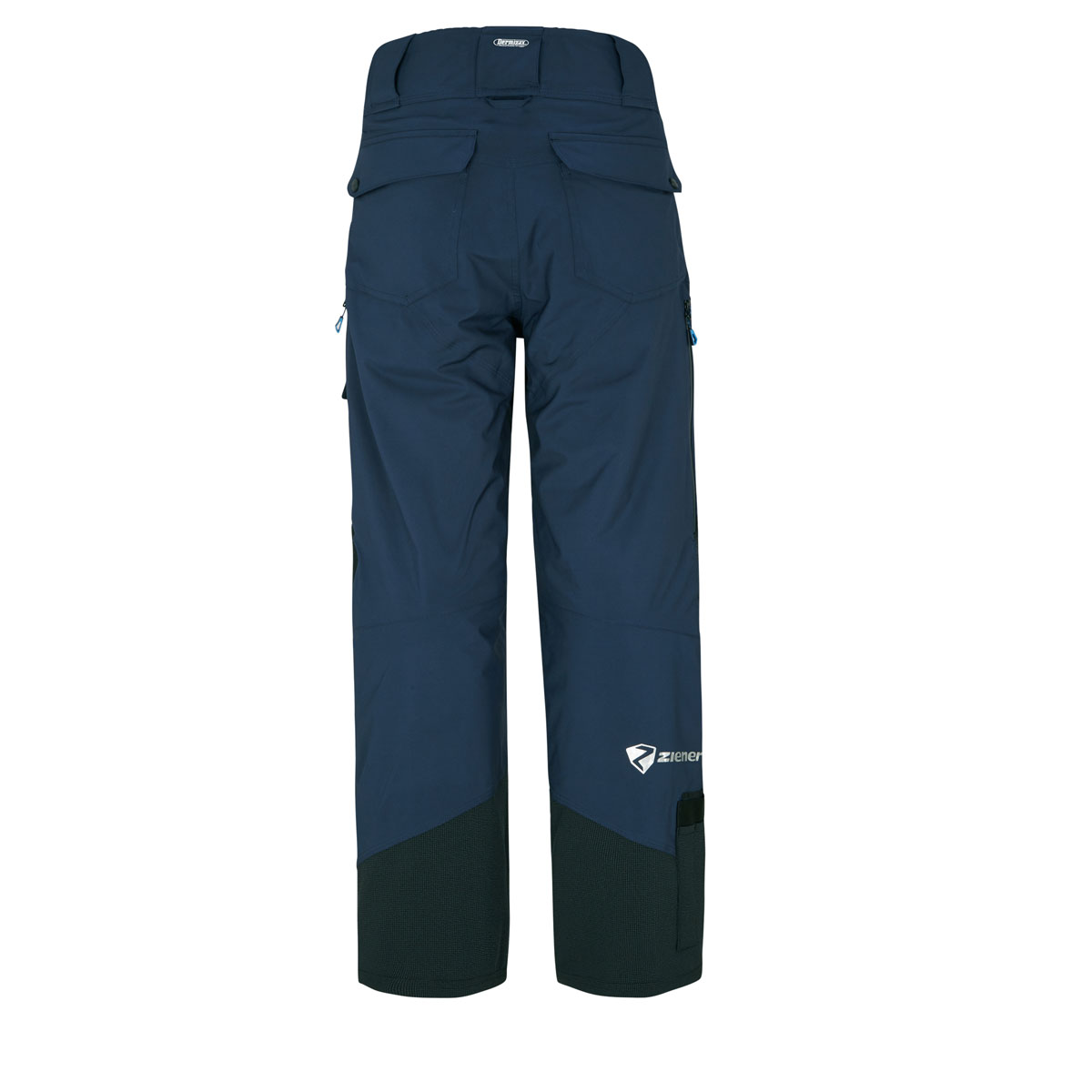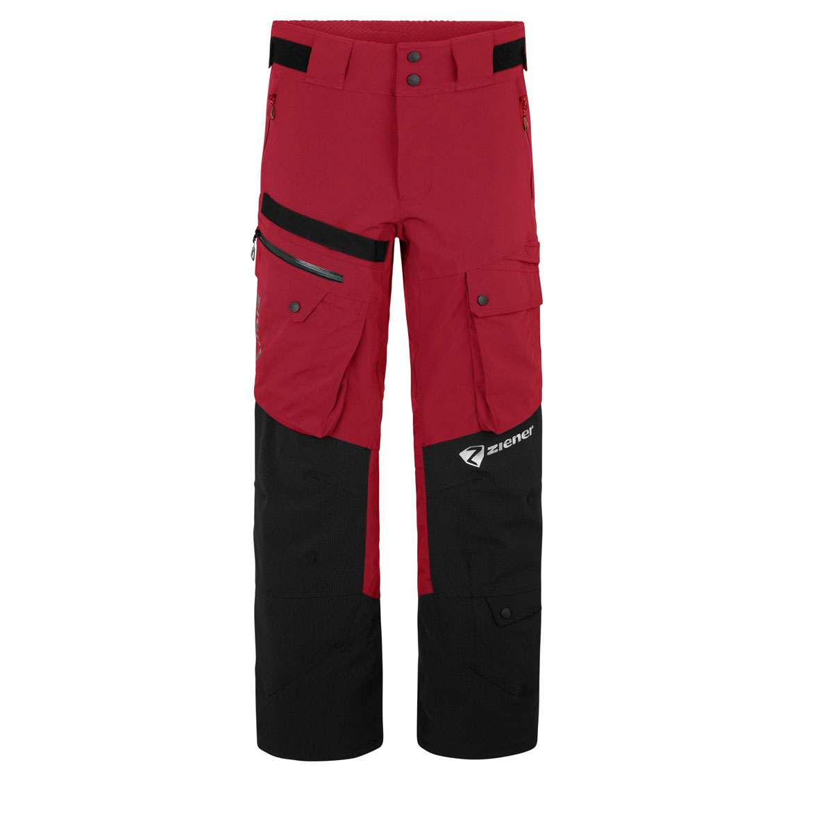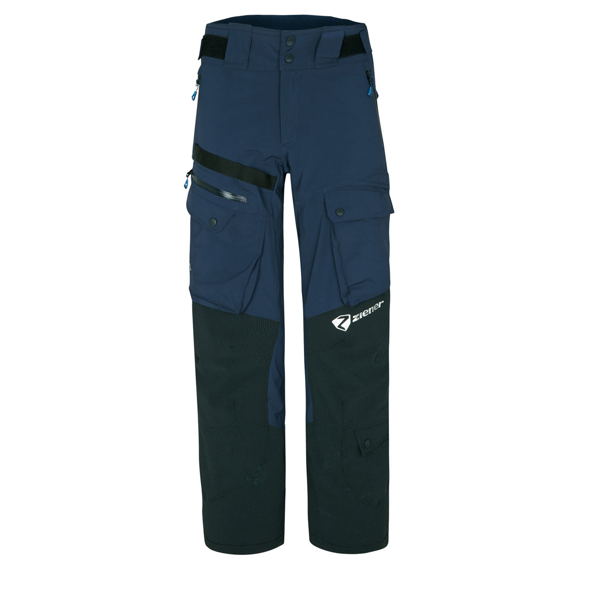 The technical ZIENER RCE COACH PANTS-Z UNISEX ski pants were specially developed for the needs of ski instructors. The use of the breathable, windproof, and waterproof Dermizax® membrane (water column 20,000 mm/breathability 10,000 g/m²/24h) makes them particularly durable and robust. In addition, the knee and lower leg areas have been reinforced with particularly abrasion-resistant material. The knee pads can be removed if necessary. Numerous pockets on the legs provide plenty of storage options for tools or start lists. A screwdriver pocket on the left leg has an additional fastening loop. The zipper for a secure fit and an extra tool pocket at the end of the leg offer extra comfort. All seams are completely welded and absolutely waterproof. Side zippers ensure perfect ventilation. The waistband is adjustable and has a warm inner lining. Suspenders or belts can be ordered as an option and can be attached to the belt loops provided.