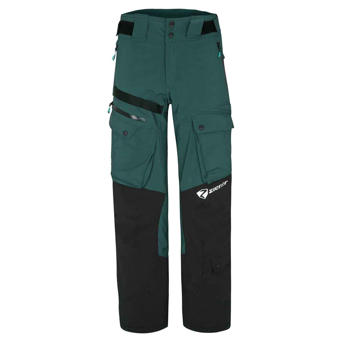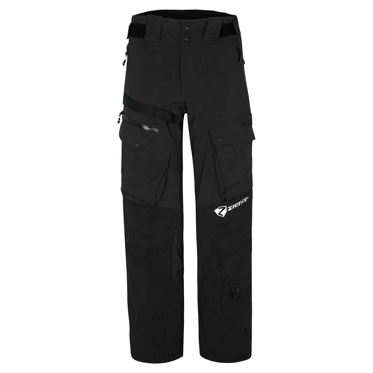 The technical ZIENER RCE COACH PANTS-Z UNISEX ski pants were specially developed for the needs of ski instructors. The use of the breathable, windproof, and waterproof Dermizax® membrane (water column 20,000 mm/breathability 10,000 g/m²/24h) makes them particularly durable and robust. In addition, the knee and lower leg areas have been reinforced with particularly abrasion-resistant material. The knee pads can be removed if necessary. Numerous pockets on the legs provide plenty of storage options for tools or start lists. A screwdriver pocket on the left leg has an additional fastening loop. The zipper for a secure fit and an extra tool pocket at the end of the leg offer extra comfort. All seams are completely welded and absolutely waterproof. Side zippers ensure perfect ventilation. The waistband is adjustable and has a warm inner lining. Suspenders or belts can be ordered as an option and can be attached to the belt loops provided.