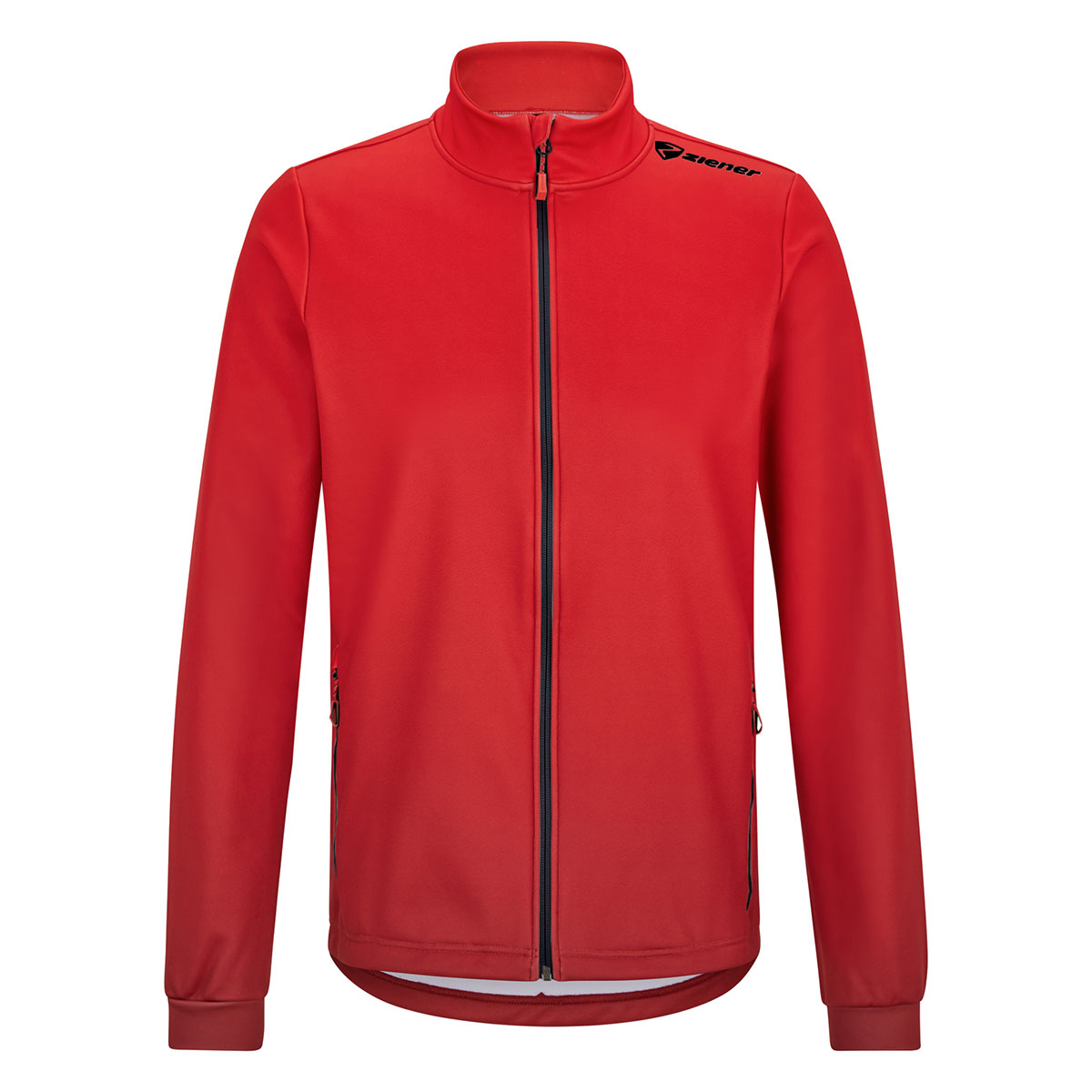 The functional, elastic ZIENER TEAMWEAR JERMAN-Z MAN softshell jacket is perfect for training or wearing over your racing suit. Thanks to the high-quality ZIENER WINDSHIELD® membrane, it is completely windproof, water-repellent, and breathable. The material protects you from cooling down due to the wind chill effect. It also has two side zip pockets and an inside pocket, which is perfect for storing your lift pass. The jacket has a close fit and features a cool color gradient. Made in Europe.