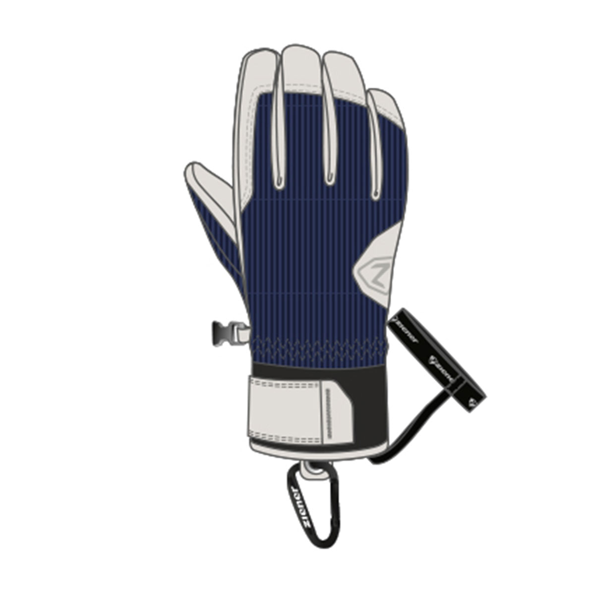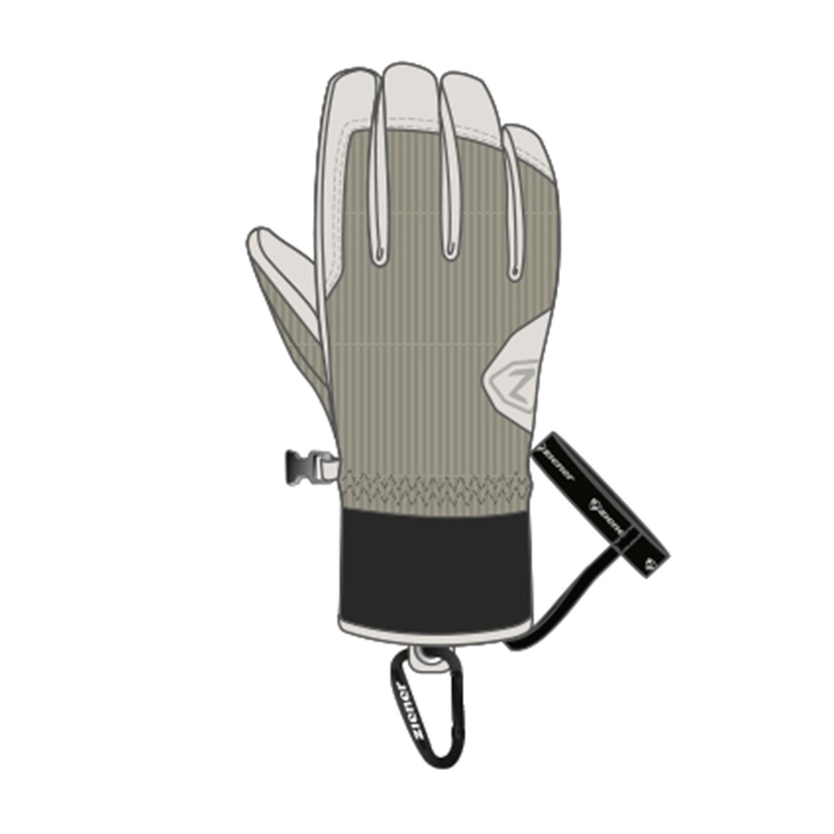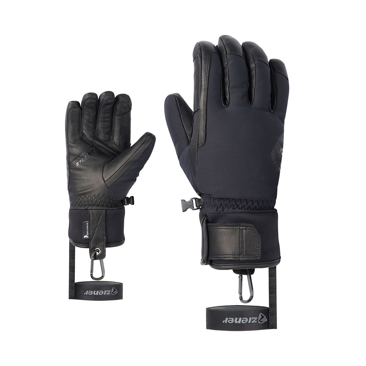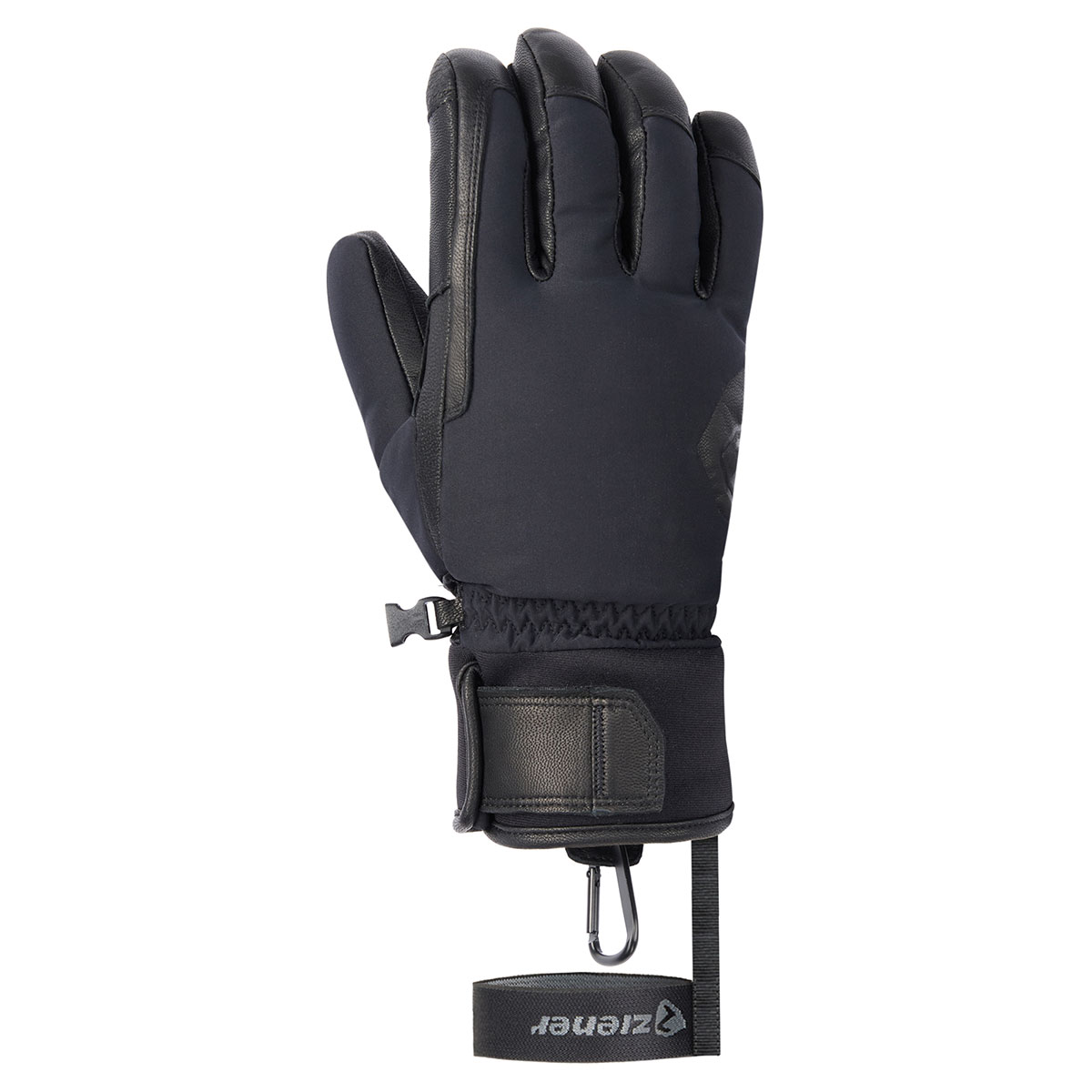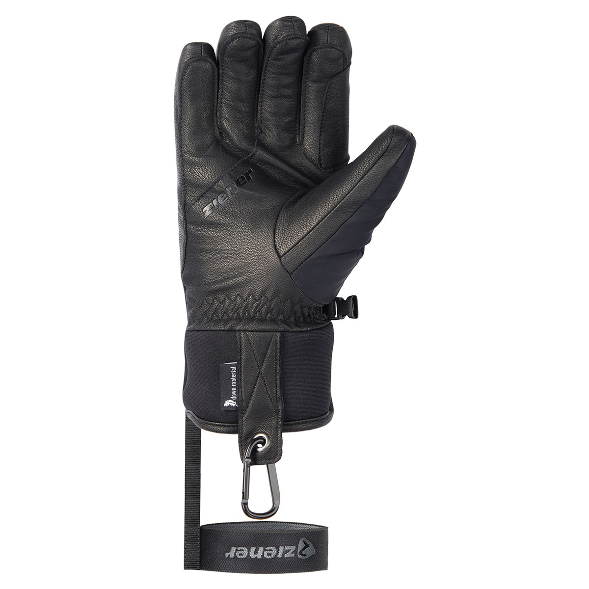 The very warm, modern ZIENER GEFANO-Z AS® ski glove impresses with its particularly soft and high-quality insulation made of natural down, which offers excellent thermal performance even in extremely low temperatures and dry cold. The gloves also feature the breathable, water- and windproof ZIENER AQUASHIELD® membrane and ZIENER THERMOSHIELD® PRO technology. The soft leather palm and warm lining ensure exceptional comfort. A practical leash reliably secures the glove to the wrist, even when removing it quickly. Other features include a wide Velcro fastener at the wrist and an additional carabiner. The impregnation is PFAS-free.