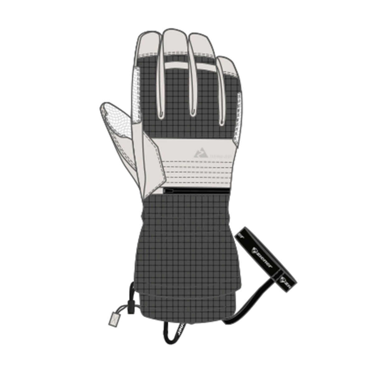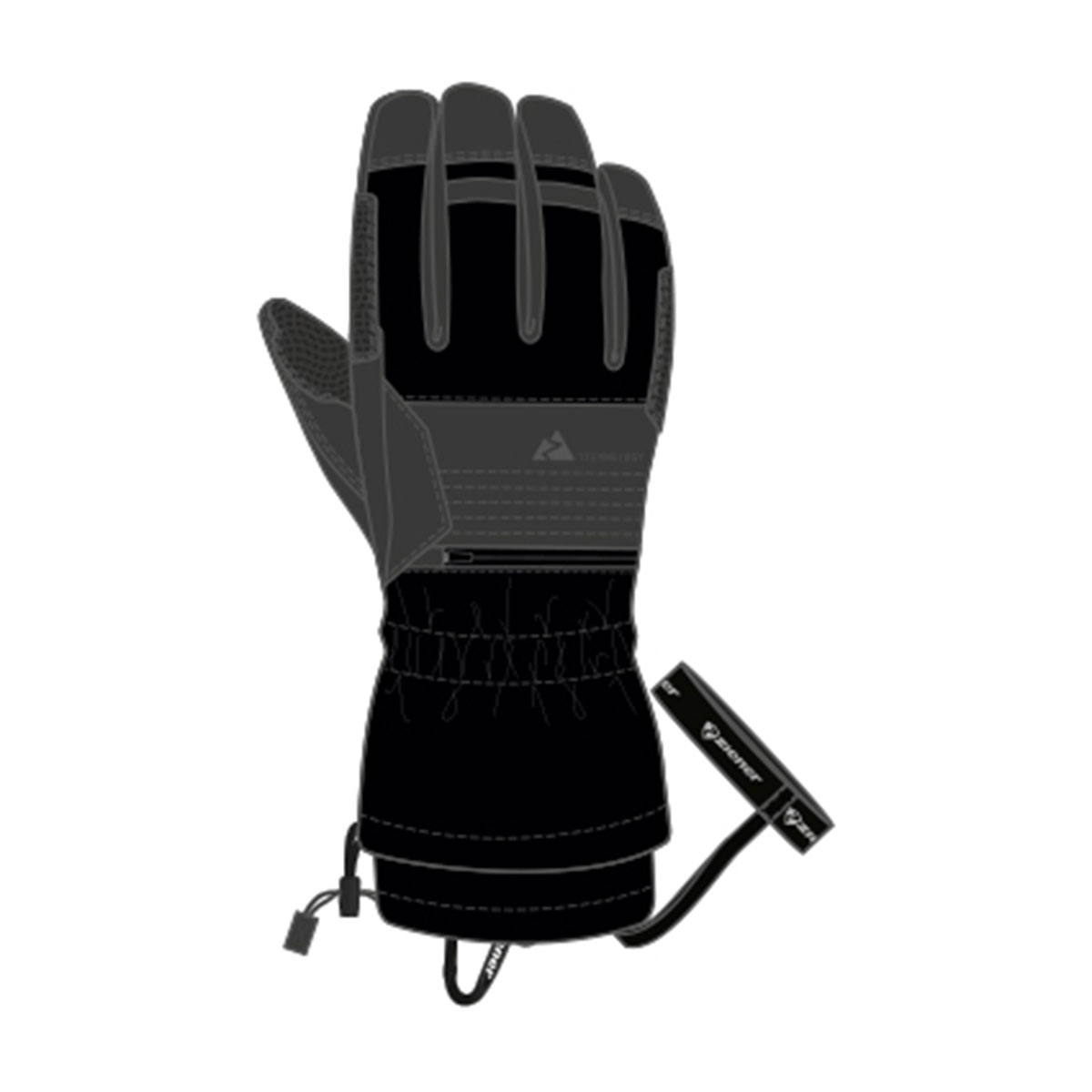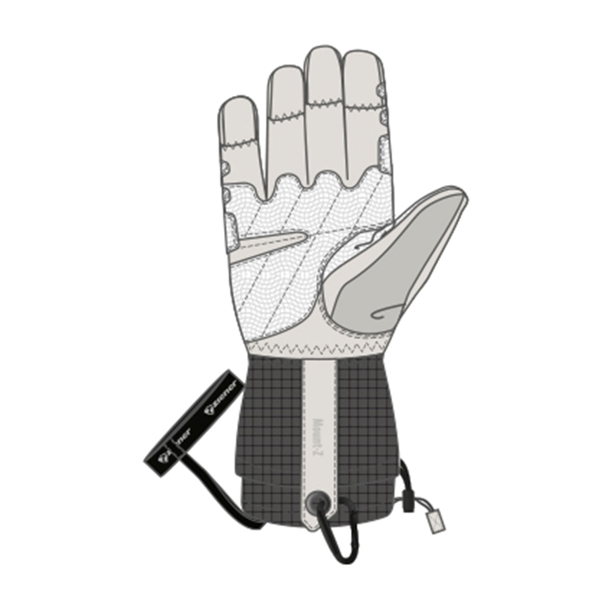 The very warm CEVEDALE-Z AS® PR mountain sports glove is versatile thanks to innovative technologies. Thanks to the ZIENER AQUASHIELD® membrane, it is breathable, waterproof, and windproof. ZIENER THERMOSHIELD® PLUS keeps hands nice and warm even when wet thanks to Primaloft® insulation. The gloves also feature PRIMALOFT® GOLD CROSS CORE™, a high-performance insulation technology that provides excellent thermal performance while remaining very lightweight. The recycled Polartec® lining provides additional warmth. The tactile leather palm and very sturdy construction are ideal for active mountain sports in winter. The cordlock system allows the long glove cuff to be secured over the jacket sleeve with one hand. Other features include an elastic leash and attached carabiner. The glove contains a proportion of recycled materials and the waterproofing is PFAS-free.