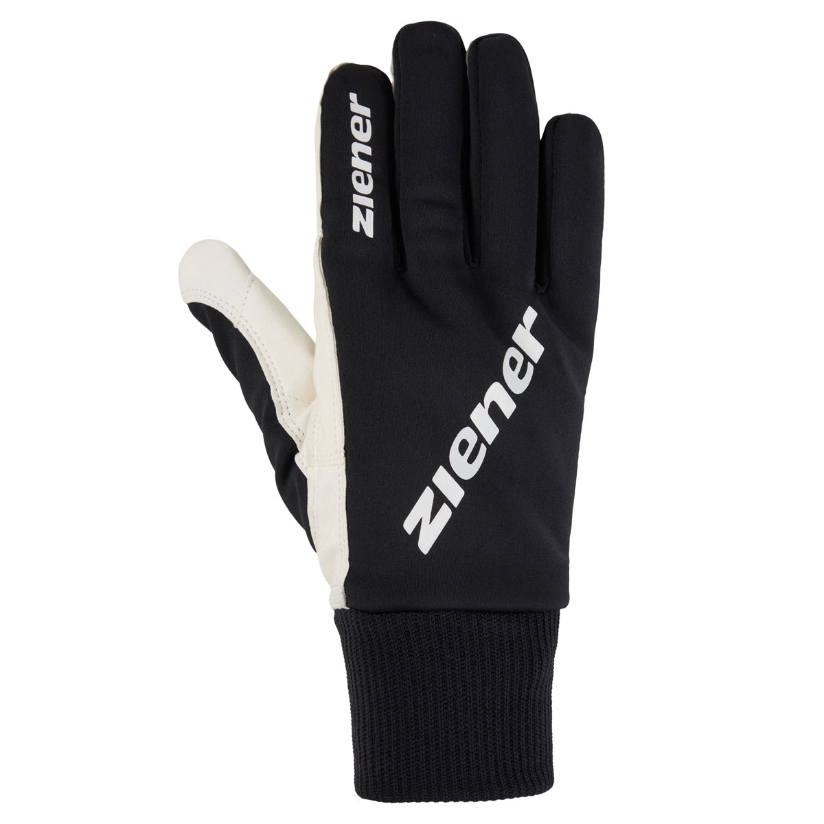 The racing-oriented, warm ZIENER UTINA-Z PR cross-country gloves made of softshell material impress with their warm PrimaLoft® Gold insulation for high wearing comfort and warmth. The highly tactile palm ensures optimal grip. Additional thumb and palm reinforcements make the elastic and quick-drying gloves extremely durable. The windproof, breathable, and water-repellent ZIENER WINDSHIELD® membrane protects the hands from cooling down in the wind. The close-fitting knit cuff ensures a perfect fit and fits under any pole strap without pressure points. An extra warm cross-country skiing glove for particularly cold days.