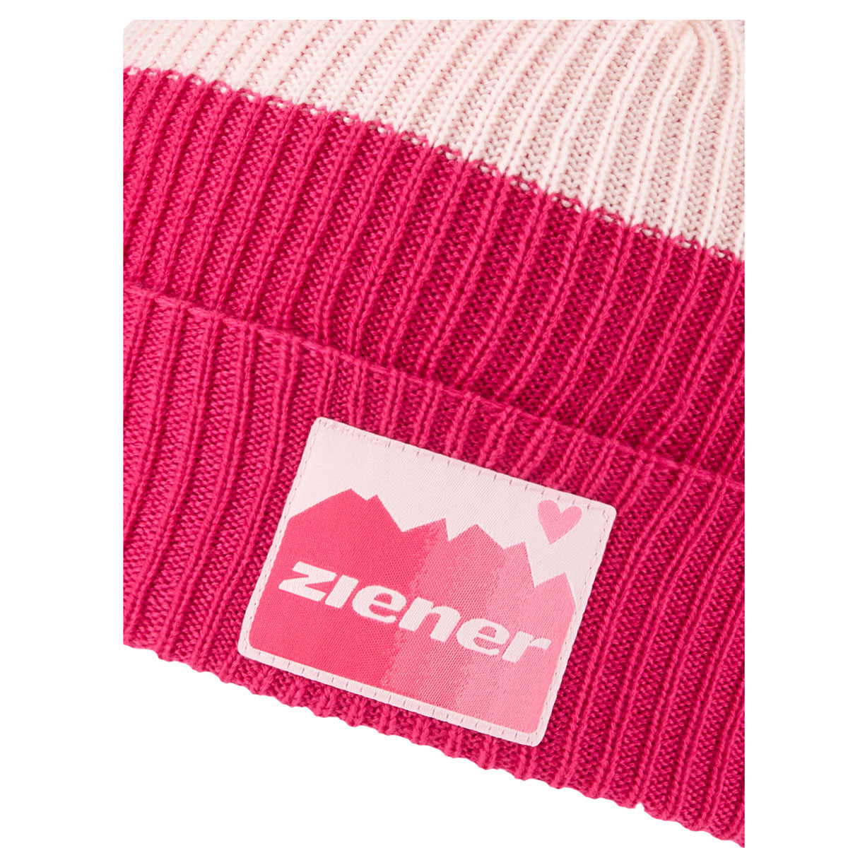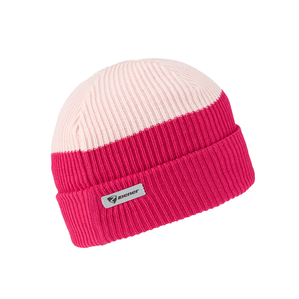 Trendy, bicolored ZIENER JUNIOR knitted hat IKADELLO-Z GIRLS HAT with fold-up cuff and reflective patch. The colorful block stripes add color to every day and make this hat perfect for all outdoor activities.