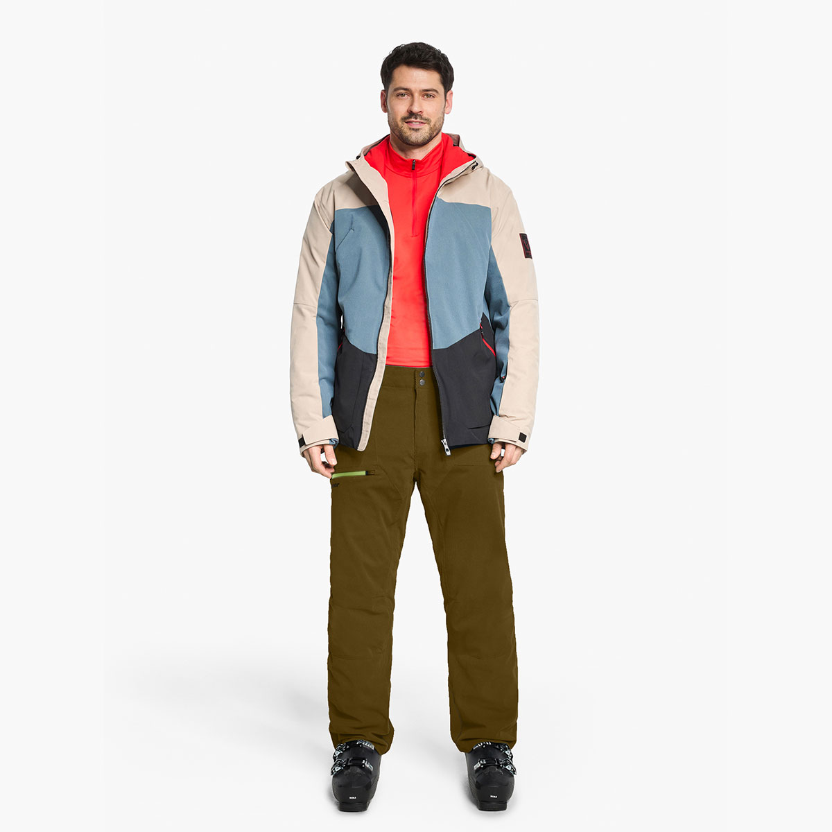 The functional, padded ZIENER men's TIFFAN-Z MAN ski pants impress with their casual, cool look. They are equipped with the breathable, waterproof and windproof ZIENER AQUASHIELD® membrane (water column 10,000mm/breathability 10,000g/m²/24h). This ensures a warm and dry climate. An 80g/m² padding made of breathable and lightweight insulation material maintains the thermal balance even when damp - for optimum comfort. The waterproofing of the pants is PFAS-free. The outer fabric is bluesign® certified. The ergonomic cut at the knee and the adjustable waistband with belt loops ensure maximum freedom of movement and a high level of comfort. Two side pockets and a pocket on the leg provide plenty of storage space. The regular fit pants have reinforced edge guard and a snow skirt.