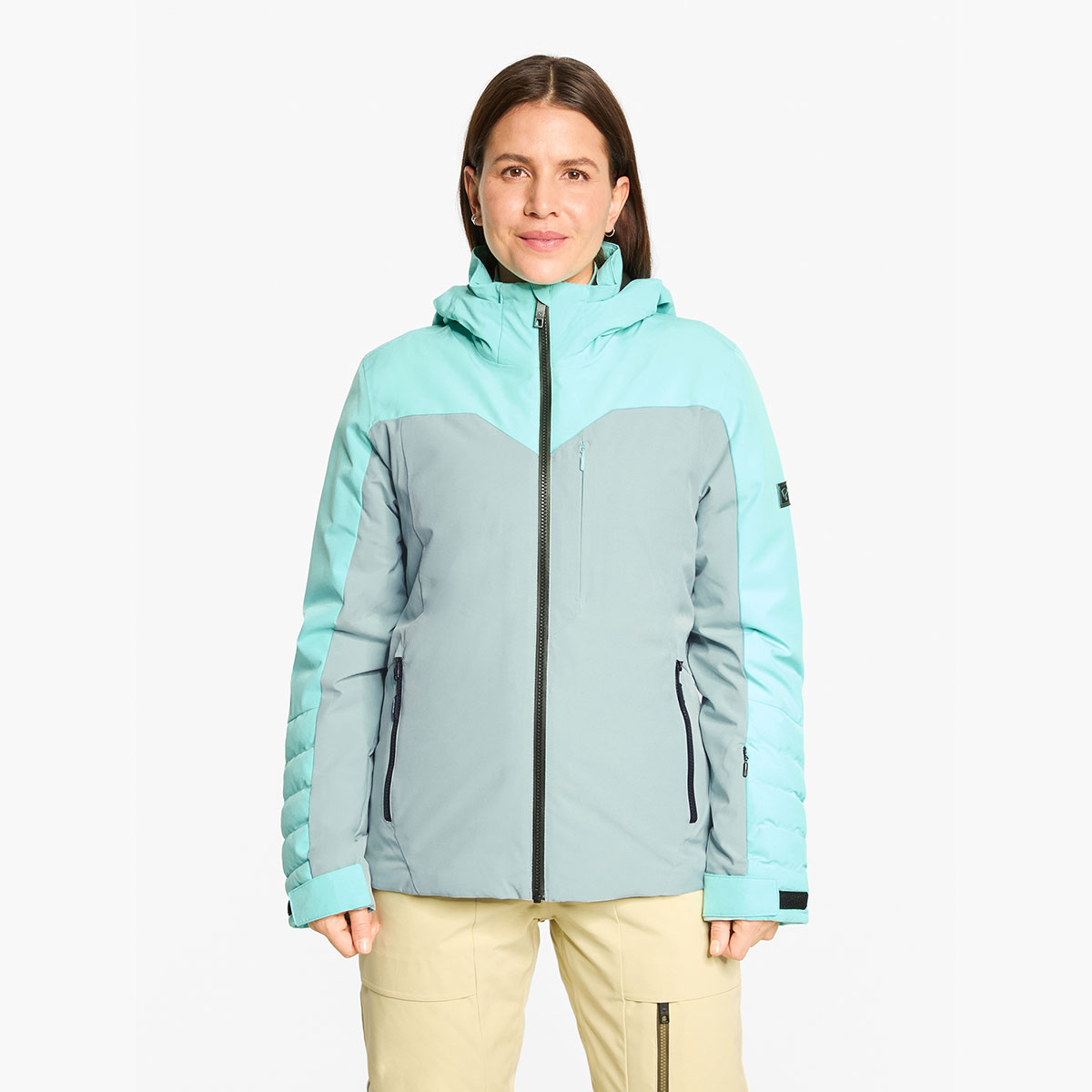 The highly functional, padded ZIENER ladies' ski jacket TOBINA-Z LADY is the perfect companion on the slopes to the high-quality, elastic outer material. The breathable, waterproof and windproof ZIENER AQUASHIELD® membrane (water column 10,000mm/breathability 10,000g/m²/24h) ensures a warm and dry climate. In addition, the high-quality, airy synthetic down insulation keeps you particularly warm and comfortable even in extreme cold: Comfortemp® padding ensures a natural climate without overheating. The high collar provides additional warmth. The jacket's waterproofing is PFAS-free. The outer fabric is bluesign® certified. Technical details such as a fixed, adjustable functional hood and elasticated inner sleeve cuffs contribute to the high functional comfort of this jacket. The elastic inner lining ensures optimum freedom of movement. The underarm vents provide the necessary ventilation on the slopes. Waterproof zippers and a snow skirt are also part of the basic equipment. The chest pocket with zipper and numerous pockets for ski goggles, sunglasses, smartphone and ski pass make the jacket indispensable.
