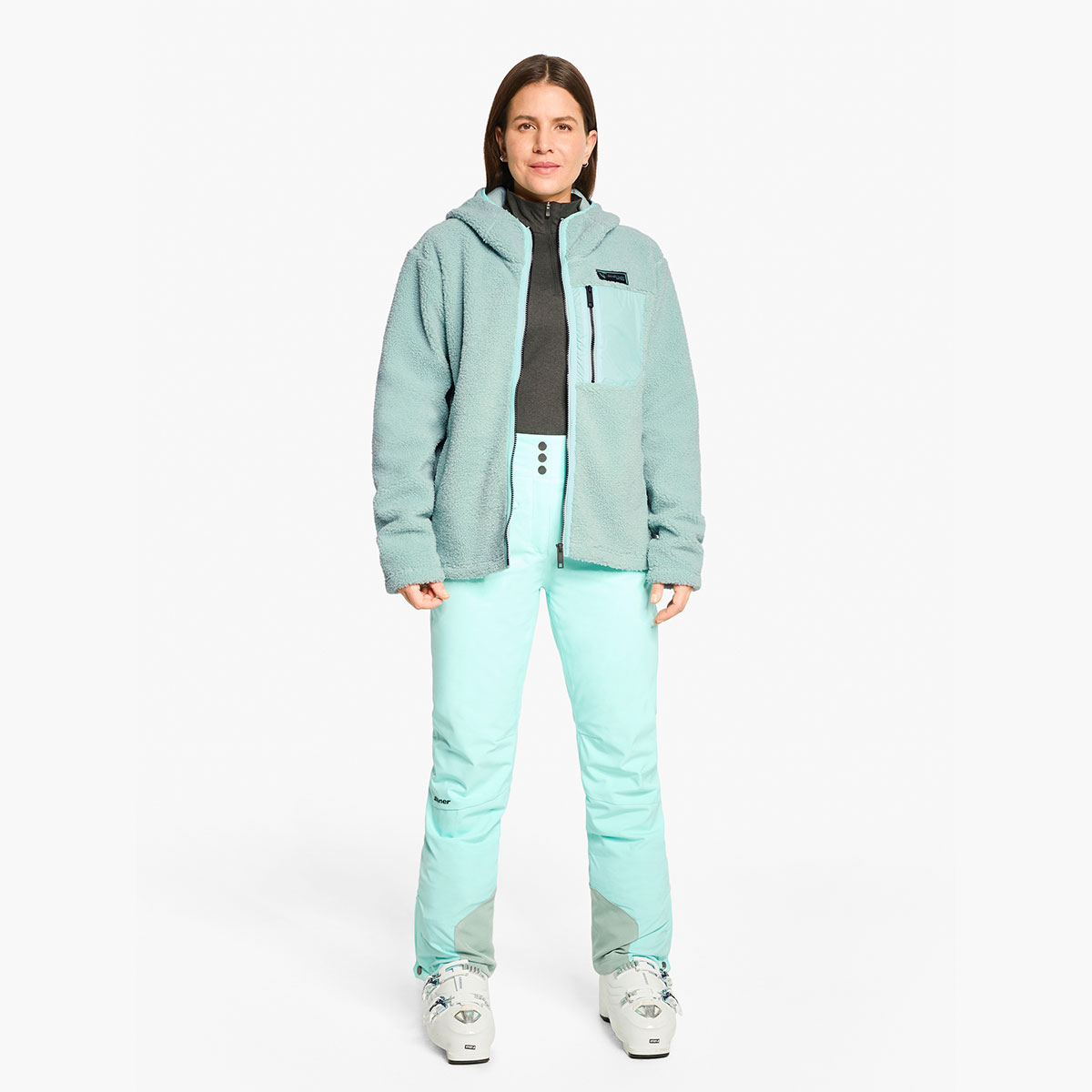 The functional, warm ZIENER JUHA-Z LADY women's midlayer jacket impresses with its fashionable high-loft fleece, which provides optimal warmth. Other technical details include a front zipper and a fixed hood. The two side pockets and chest pocket with zippers provide storage space for your essentials. This fleece jacket combines functionality with style and cozy comfort.