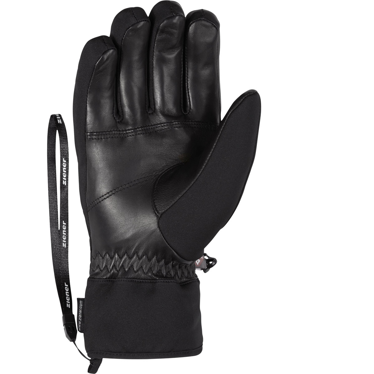 The extra soft and warm ZIENER men's ski gloves GIN-Z GTX PR are equipped with excellent warming PrimaLoft® Gold insulation. The soft fleece lining keeps you particularly warm on cold days on the slopes. Thanks to the new GORE-TEX ePE membrane, the gloves are permanently waterproof, windproof and breathable. The innovative ePE membrane is PFAS-free and also bluesign® and Standard 100 by OEKO-TEX® certified. The combination of lambskin leather and softshell materials guarantees high-quality equipment with plenty of flexibility. The soft leather palm is both tactile and robust. The cuff can be adjusted with a Velcro fastener and worn over or under the sleeve. The Z-leash additionally secures the glove to the wrist. The product contains non-textile parts of animal origin.