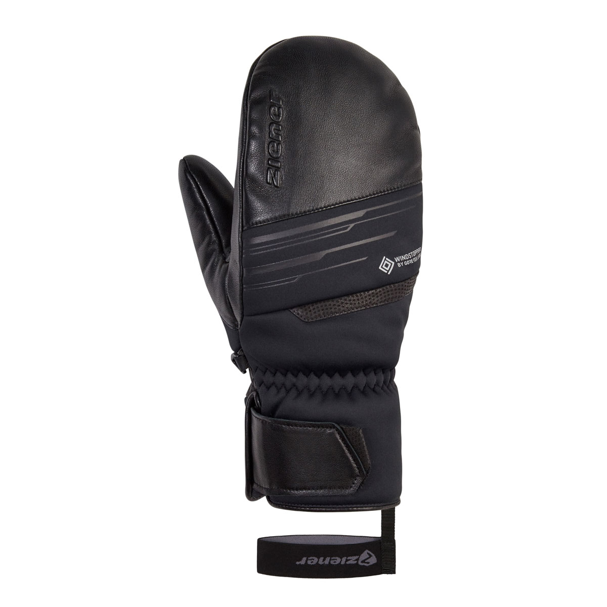 The extra warm and particularly soft ZIENER men's ski mittens GARCELO-Z WS PR MITTEN score points with the new PrimaLoft® Gold CROSS CORE™ technology: the revolutionary insulation technology ensures outstanding thermal performance with a very low weight. The GORE® WINDSTOPPER® membrane makes the mitten completely windproof and highly breathable. The outer fabric is bluesign® certified. The combination of lambskin leather and particularly soft softshell material ensures great flexibility and high-quality features. The soft leather palm is both tactile and robust. The cuff can be adjusted with a fastener on the backhand. The Z-leash additionally secures the mitten to the wrist. The product contains non-textile parts of animal origin.