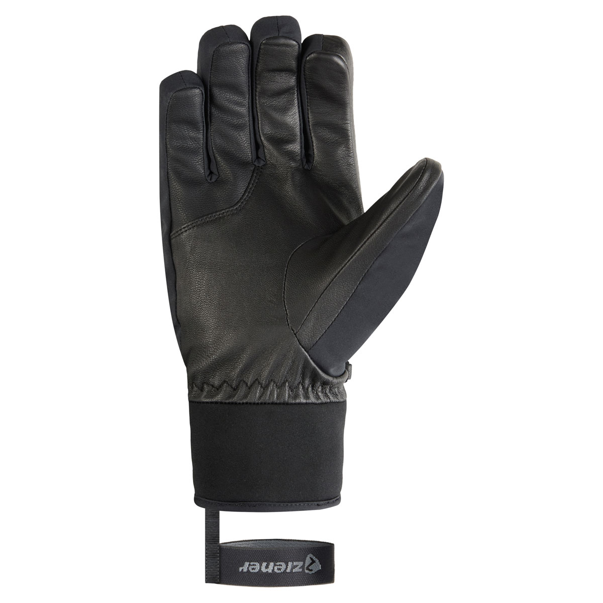 The modern ZIENER men's ski gloves GINOS-Z GTX PR are equipped with the new GORE-TEX ePE membrane and are therefore permanently waterproof, windproof and breathable. The innovative ePE membrane is PFAS-free and also bluesign® and Standard 100 by OEKO-TEX® certified. The PrimaLoft® Gold insulation ensures a pleasant climate in the glove even in very cold temperatures. The knuckles are lightly padded. The cuff with Velcro fastener allows the gloves to be worn under a jacket. The wide leash reliably secures the glove to the wrist, even when quickly removed. The product contains non-textile parts of animal origin.