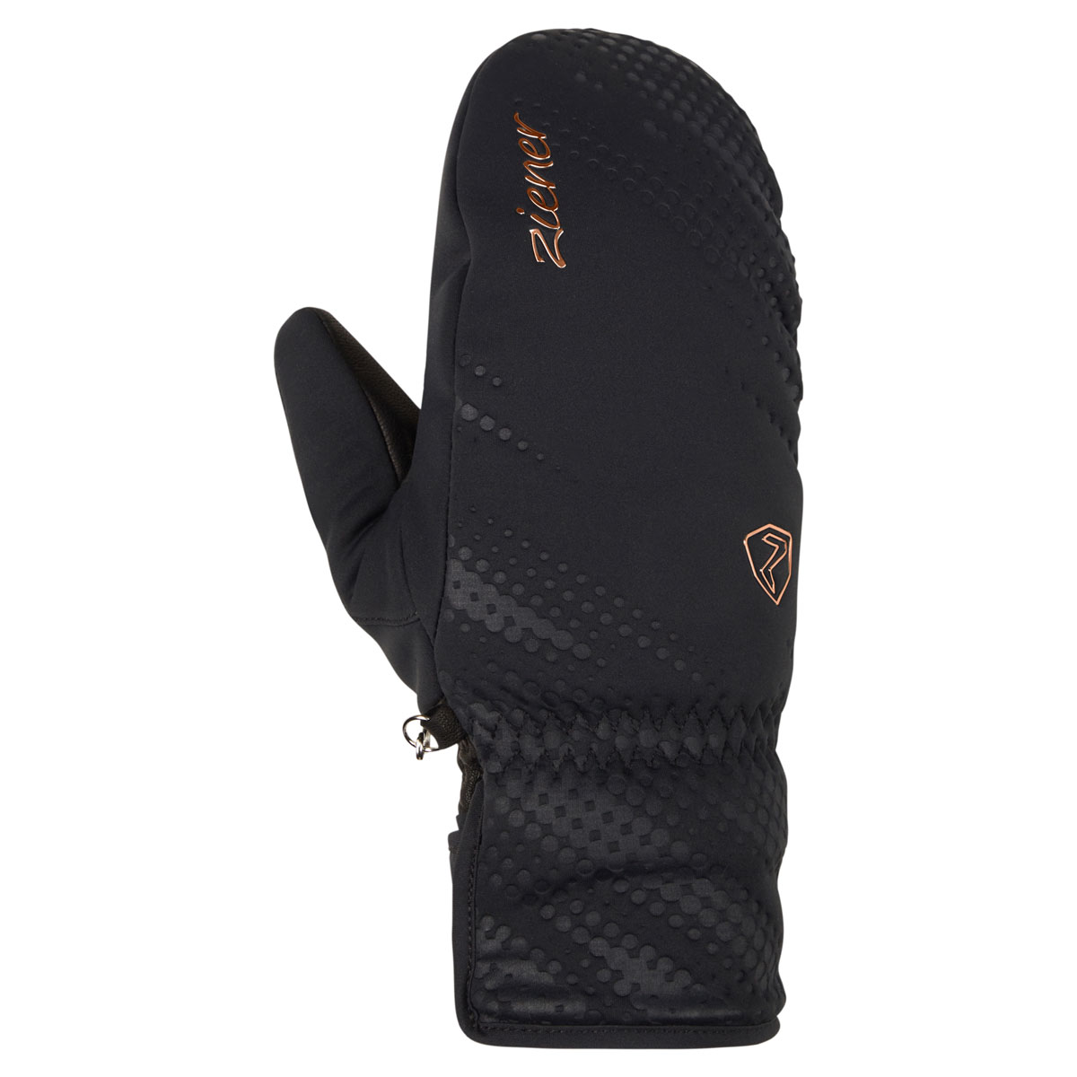The warm, fashionable ZIENER ladies' ski mittens KAROIA-Z WS PR MITTEN LADY are absolutely windproof and very breathable thanks to the use of GORE® WINDSTOPPER®. Thanks to the use of high-quality PrimaLoft® Gold Insulation, the glove reliably protects against the cold. The soft softshell material guarantees a high-quality finish with plenty of flexibility. The plush lining provides additional comfort and warmth. The cuff can be adjusted with a wide Velcro fastener and worn under the sleeve. The product contains non-textile parts of animal origin. The outer fabric is bluesign® certified.