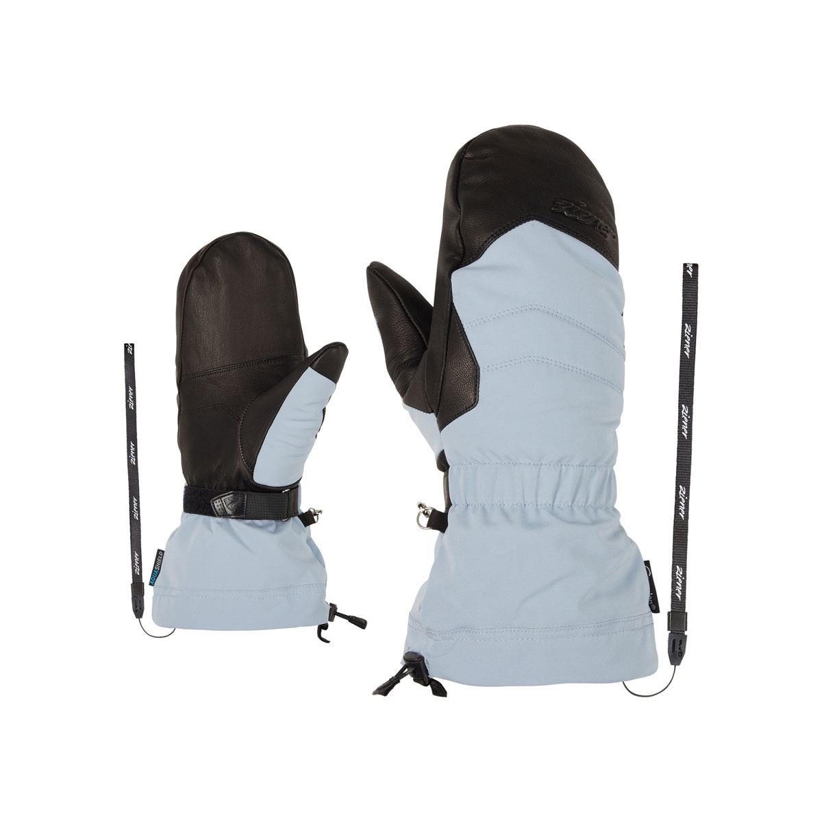The sporty, functional, freeride-oriented ZIENER women's ski mittens KILATI AS® AW MITTEN LADY are equipped with the waterproof and windproof ZIENER AQUASHIELD® membrane, which ensures a warm and dry climate inside the mittens. Thanks to the use of extra warm and elastic materials as well as a 5-finger lining with warm and soft lavalan® wool padding, the mittens score with a pleasant, comfortable feel - even in adverse weather conditions. The soft goatskin leather palm provides optimum grip. The long cuff prevents snow from getting in. The cordlock system makes it easy to fasten the mitten cuff over the jacket sleeve with just one hand. The practical leash reliably secures the glove to the wrist, even when quickly removed. The product contains non-textile parts of animal origin. The outer fabric is bluesign® and Standard 100 by OEKO-TEX® certified.