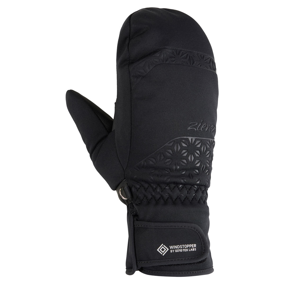 The warm, soft ZIENER women's ski mittens KLEMENTINA-Z WS MITTEN LADY are completely windproof and very breathable thanks to the use of GORE® WINDSTOPPER®. The softshell material guarantees a high-quality finish with plenty of flexibility. The very soft padding keeps cold women's hands pleasantly warm and also provides an optimum grip. The plush lining provides additional comfort and warmth. The cuff can be adjusted with a wide Velcro fastener and worn under the sleeve.