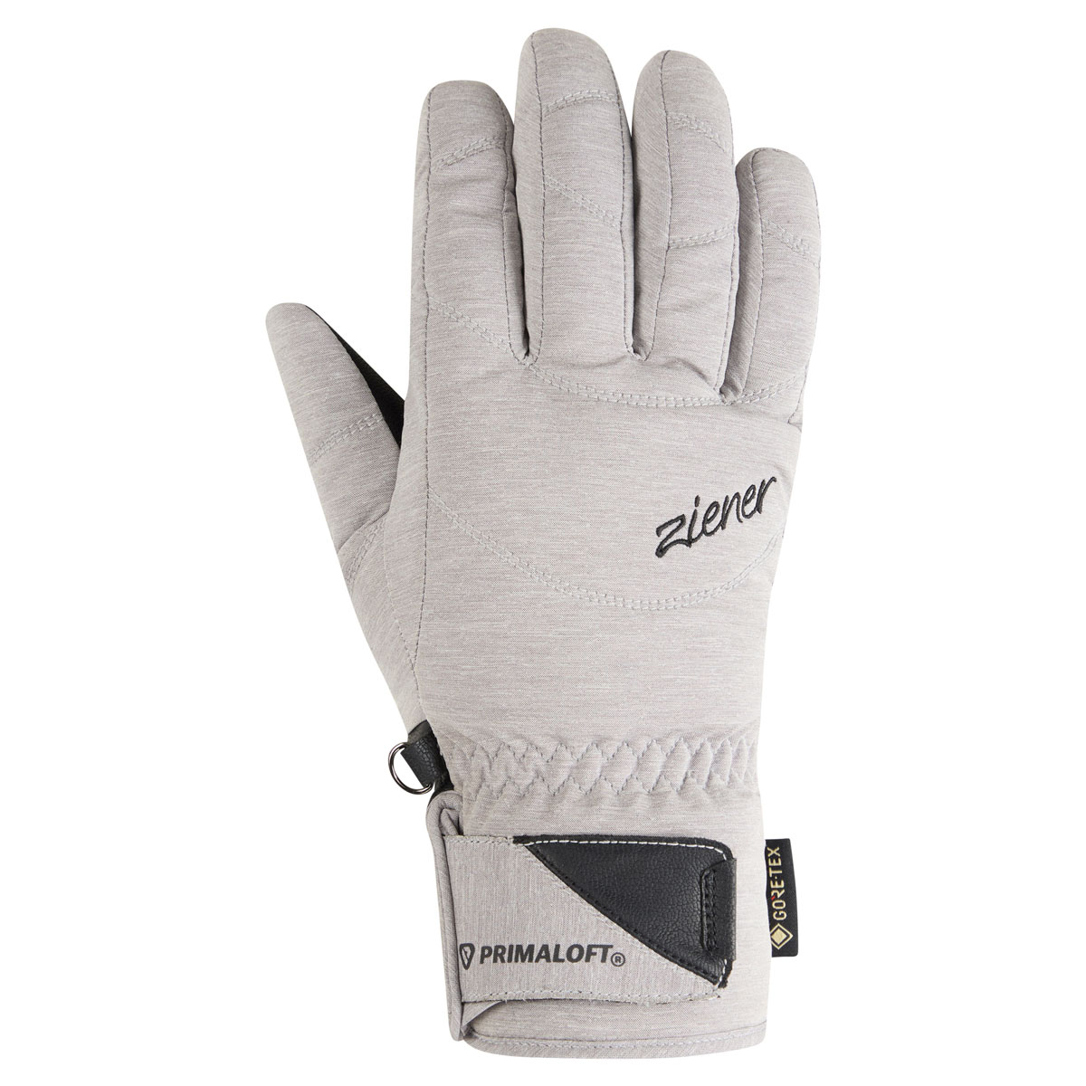 The warm, waterproof ZIENER women's ski gloves KLENN-Z GTX PR LADY are equipped with the new GORE-TEX ePE membrane and are therefore permanently waterproof, windproof and breathable. The innovative ePE membrane is PFAS-free and also bluesign® and Standard 100 by OEKO-TEX® certified. The PrimaLoft® Gold insulation provides excellent warmth even in extreme conditions. The plush lining provides additional warmth and the tactile palms offer maximum comfort. The Velcro fastener on the wrist ensures a perfect fit and can be worn under the jacket.