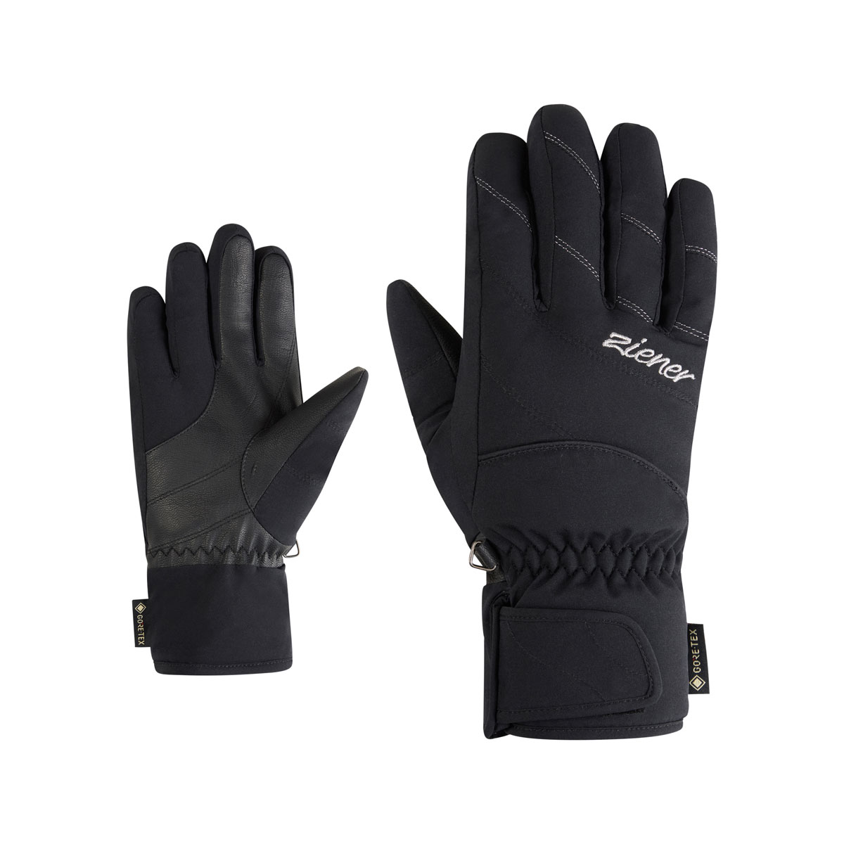 The fashionable ZIENER women's ski gloves KATIMA-Z GTX LADY are equipped with the new GORE-TEX ePE membrane and are therefore permanently waterproof, windproof and breathable. The innovative ePE membrane is PFAS-free and also bluesign® and Standard 100 by OEKO-TEX® certified. The outer fabric of the glove is also bluesign® and Standard 100 by OEKO-TEX® certified. The warm, soft padding with additional plush lining keeps you particularly warm on cold winter days. The glove's filling is also bluesign® and Standard 100 by OEKO-TEX® certified. The tactile inner hands offer maximum comfort. The Velcro fastener on the wrist ensures a perfect fit and can be worn under a jacket.