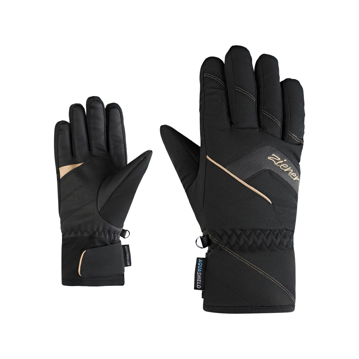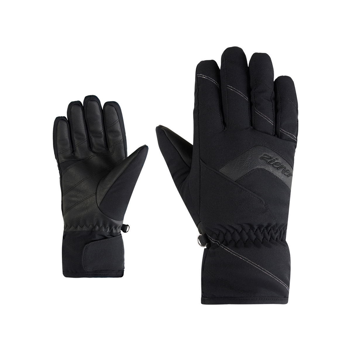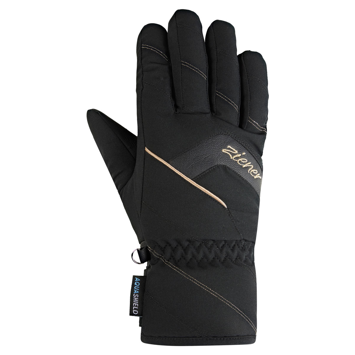 The sporty ZIENER women's ski gloves KARION-Z AS® LADY are equipped with the breathable, waterproof and windproof ZIENER AQUASHIELD® membrane, which ensures a warm and dry climate inside the glove. The Velcro fastener provides a perfect fit on the wrist. The soft glove scores points for its optimum functionality and suitability for winter sports. The outer fabric is bluesign® certified.