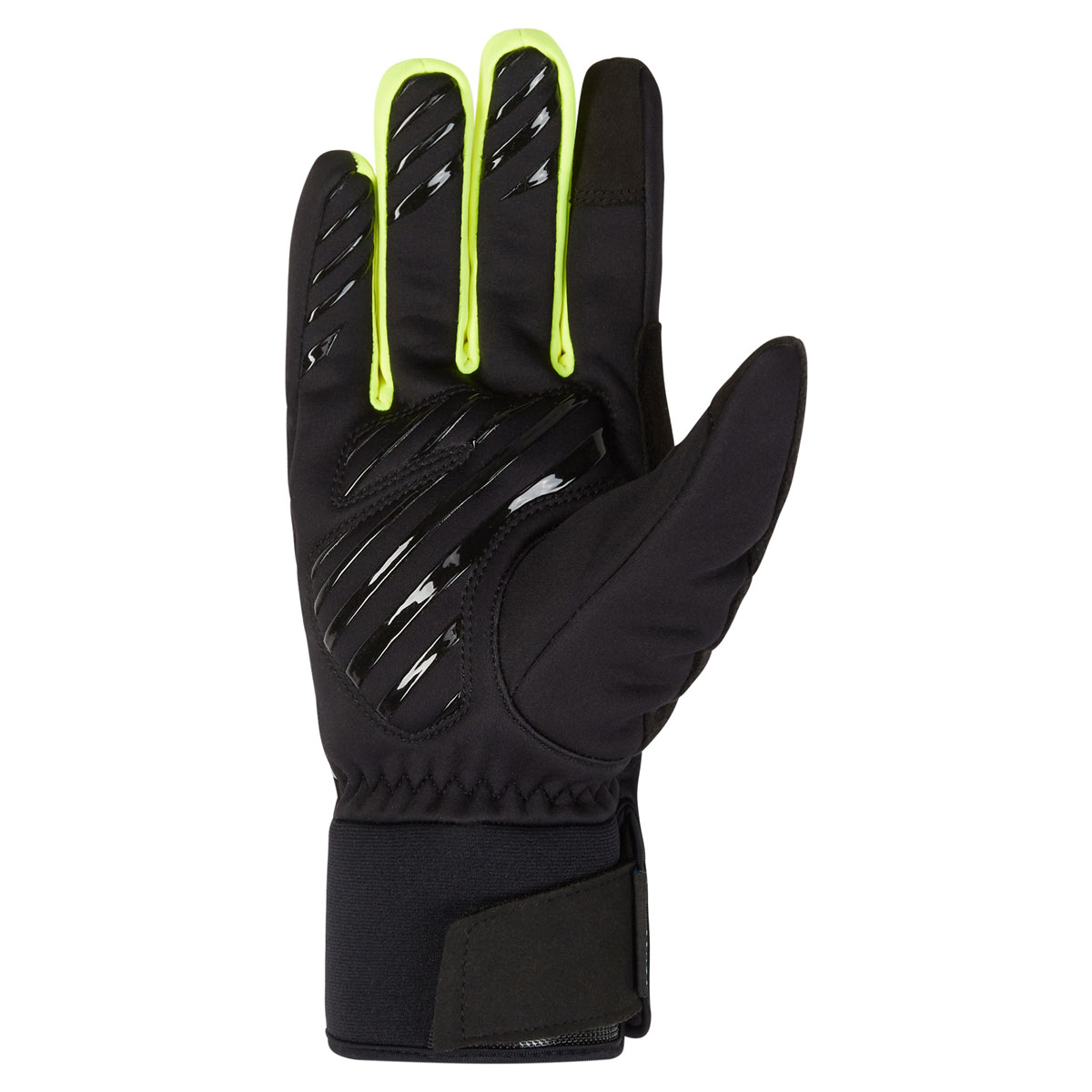 The waterproof ZIENER winter cycling gloves DILIP-Z AS® TOUCH made of softshell material guarantee perfect cycling enjoyment in the cold season. The waterproof and windproof ZIENER AQUASHIELD® membrane keeps you warm and dry even in adverse weather conditions. Excellent grip and robustness are guaranteed by the lightly padded palm. During particularly strenuous activities, the fleece thumb can be used to easily wipe away sweat. With the integrated TOUCH function, touchscreens can be operated with the gloves. The close-fitting cuff with Velcro fastener ensures an optimum closure on the wrist and a good fit. The edging on the sharp Velcro edge protects the material and increases user comfort. Reflective design elements are incorporated on the backhand.