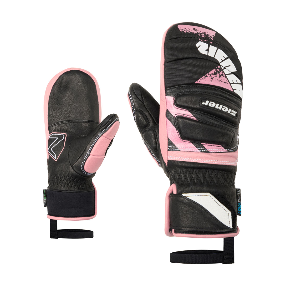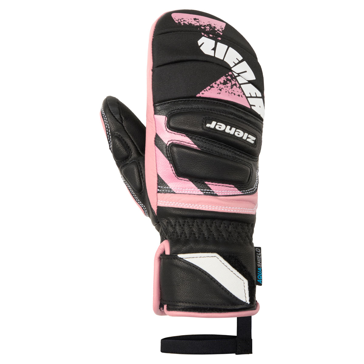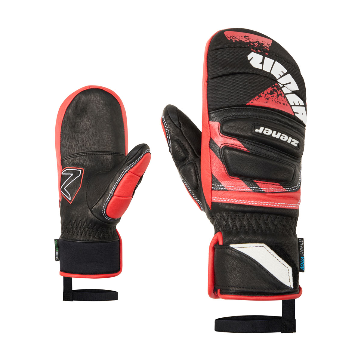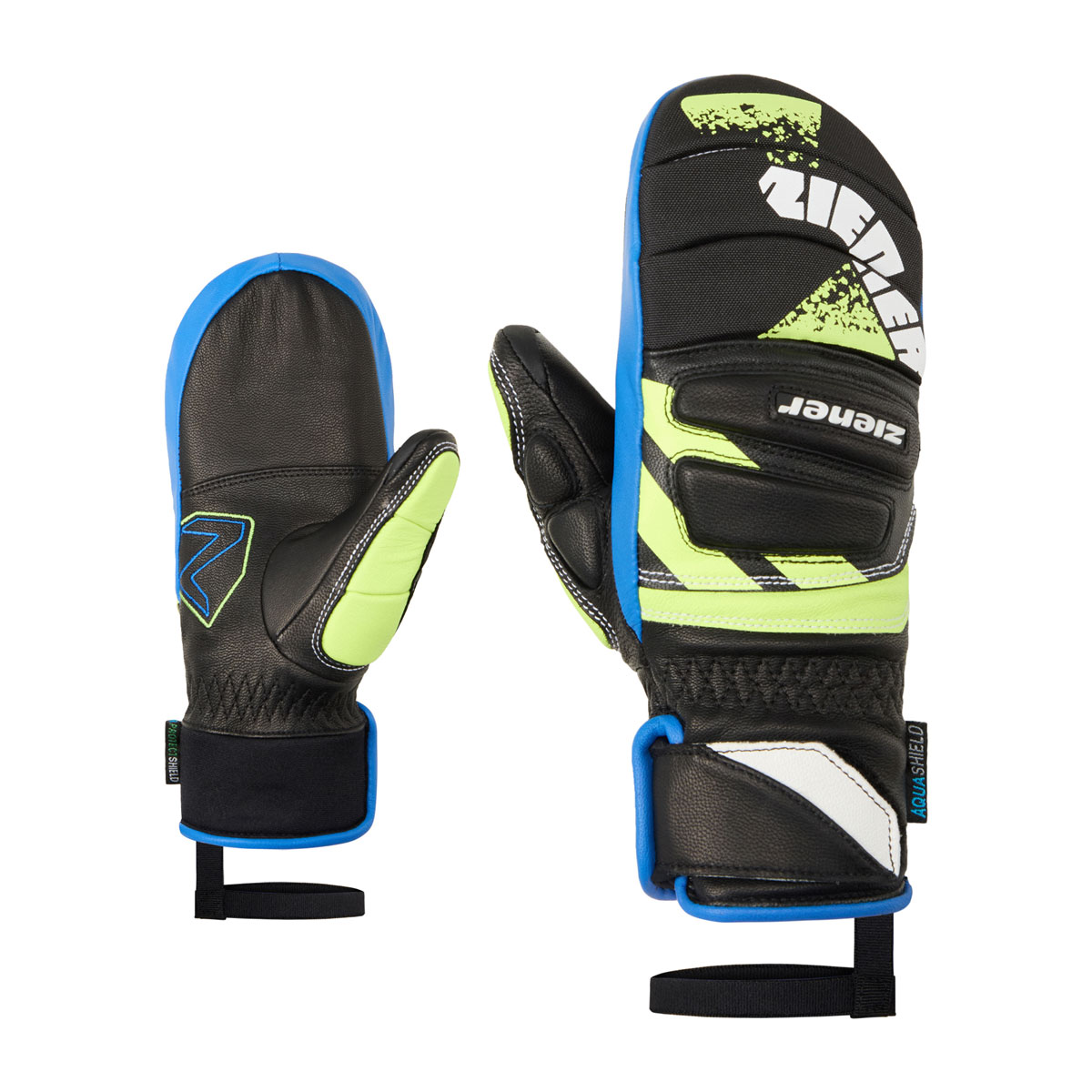 The extremely sporty ZIENER children's ski glove LOPAKI-Z AS® PR MITTEN JUNIOR with its waterproof and warm properties is perfect for the next generation of ski racers. The race mittens have a fully padded backhand and thumb area. The soft leather palm provides additional grip. The PrimaLoft® Gold insulation provides excellent warmth even in extreme conditions. The ZIENER AQUASHIELD® membrane with its waterproof and windproof properties ensures an optimum climate in the mitten. The close-fitting neoprene cuff makes it easier to attach a protector to the lower arm and improves comfort in combination with the racing suit. The loop on the wrist makes it easier to put on. The product contains non-textile parts of animal origin.