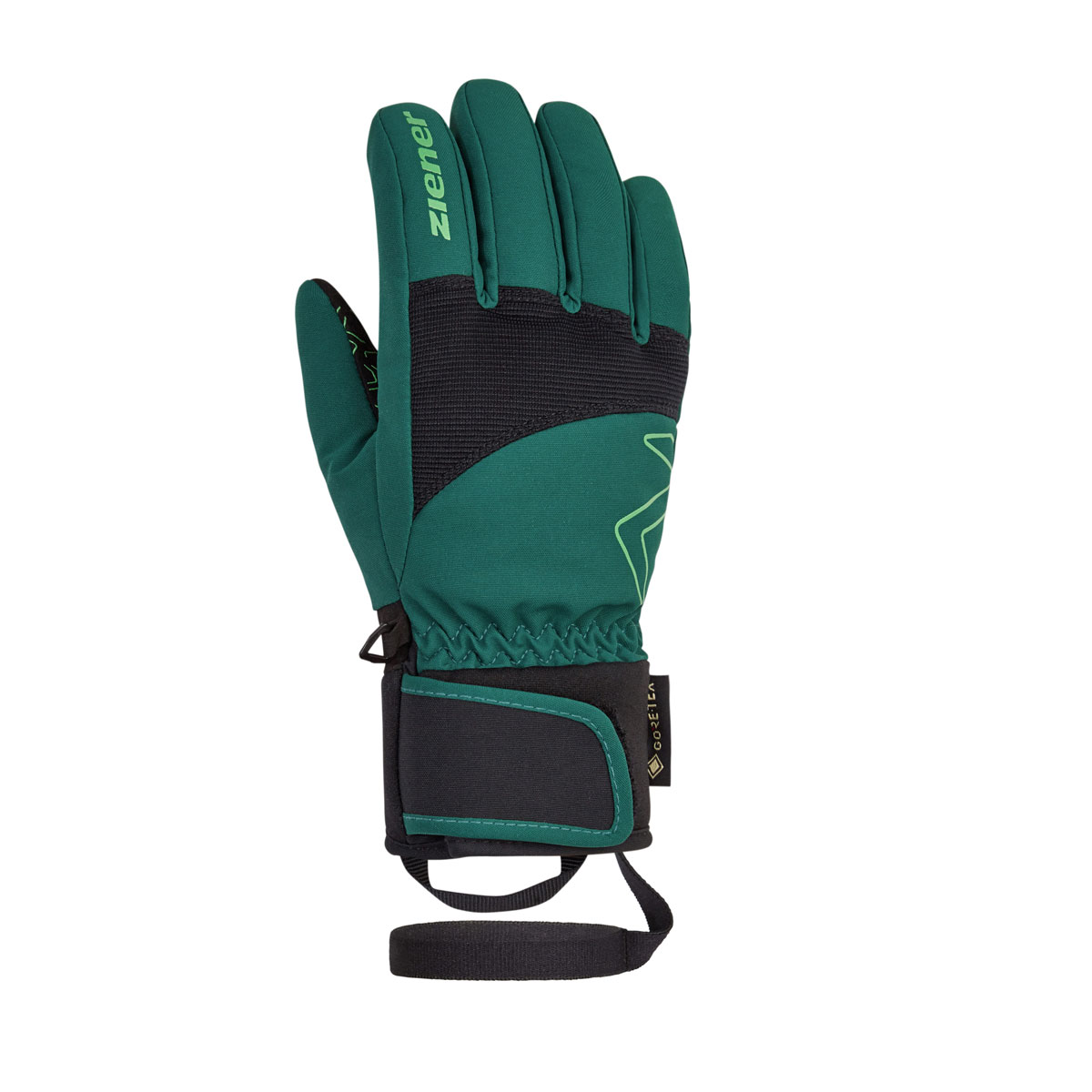 The warm, freeride-oriented, waterproof ZIENER LOTAR-Z GTX PR JUNIOR ski gloves keep children's hands cozy and warm thanks to the soft PrimaLoft® Gold insulation. They are equipped with the new GORE-TEX ePE membrane, making them permanently waterproof, windproof and breathable. The innovative ePE membrane is PFAS-free and also bluesign® and Standard 100 by OEKO-TEX® certified. The elastic outer material offers plenty of freedom of movement and the printed palm ensures grip stability. Thanks to the neoprene cuff, the gloves fit the wrist perfectly. The practical leash reliably secures the glove to the wrist, even when quickly removed.