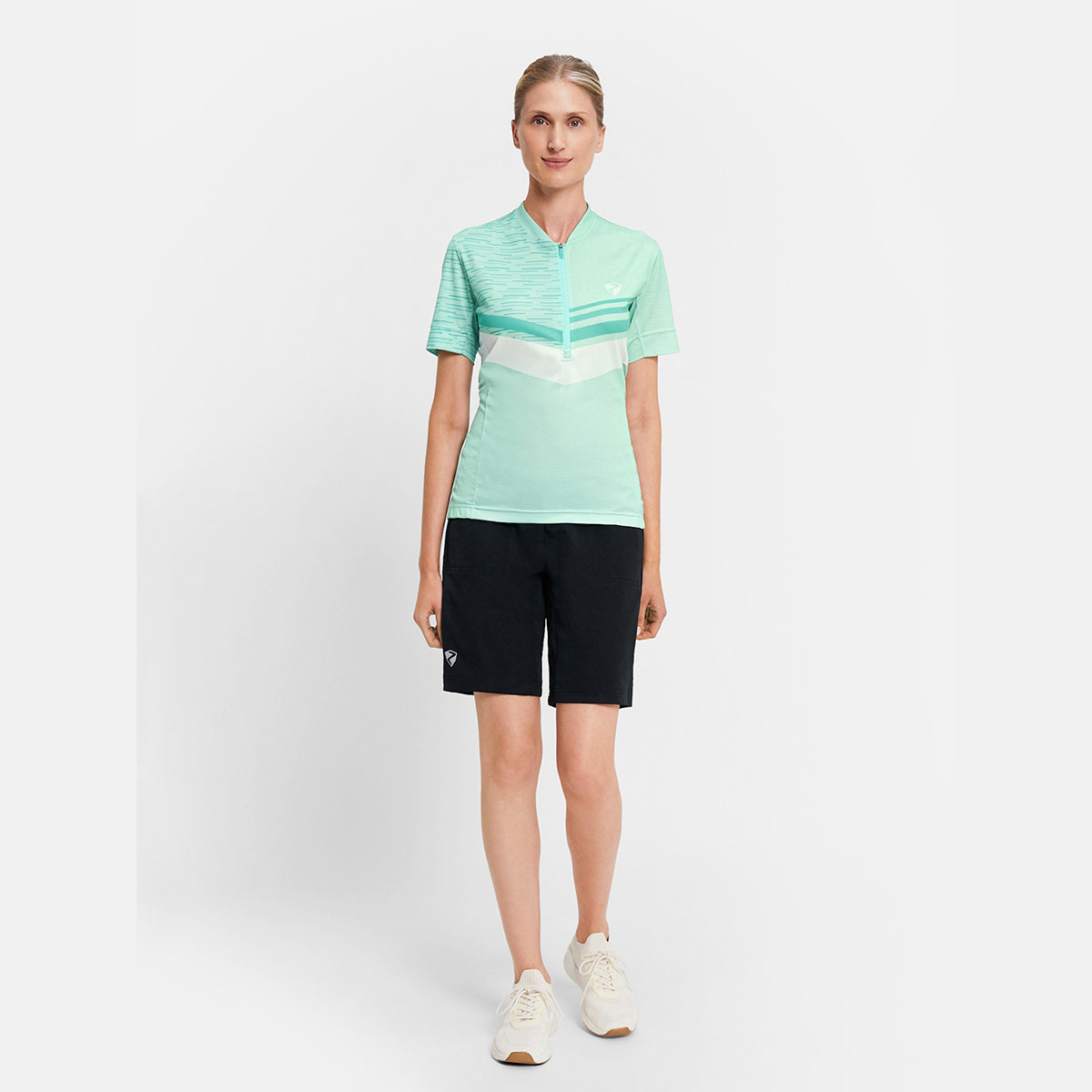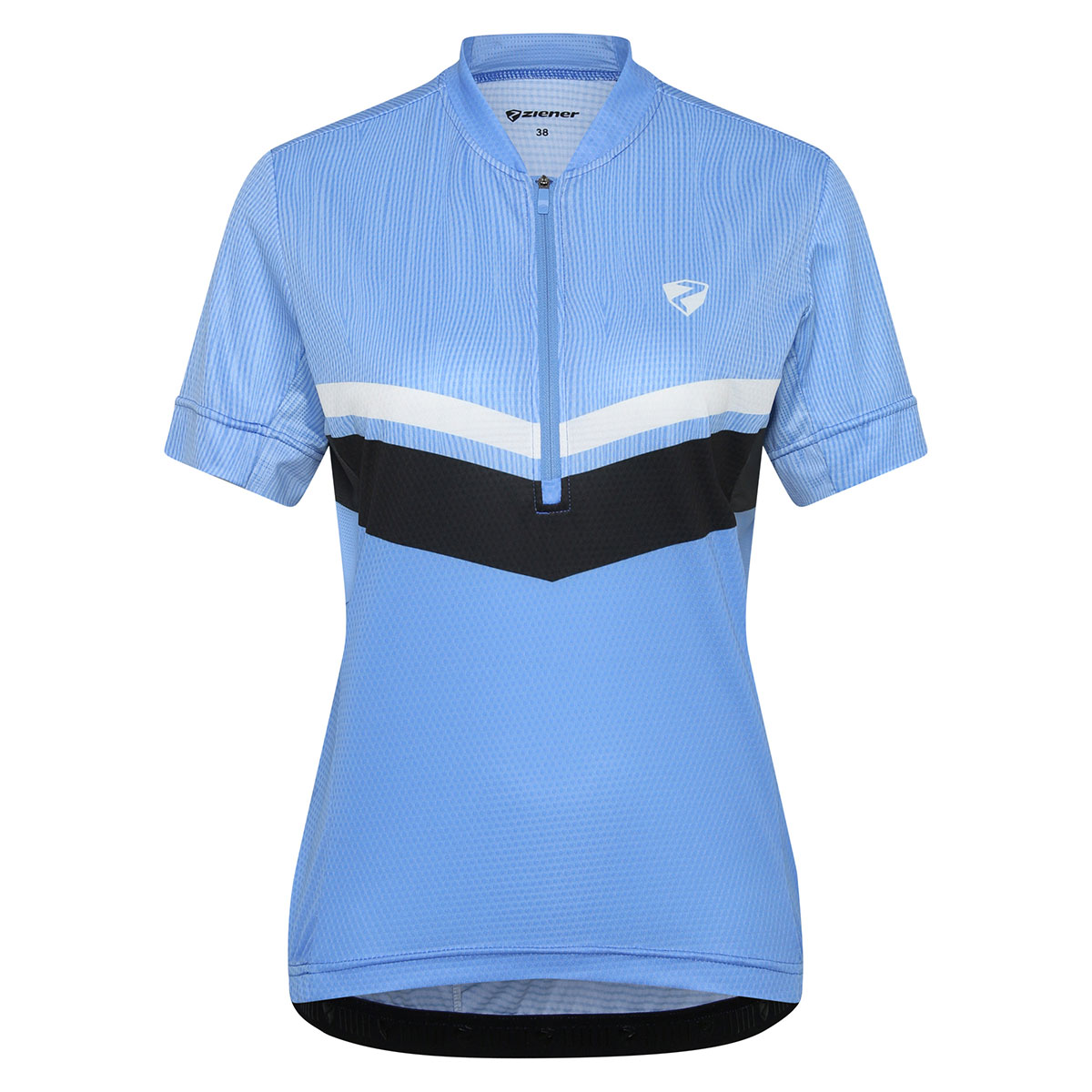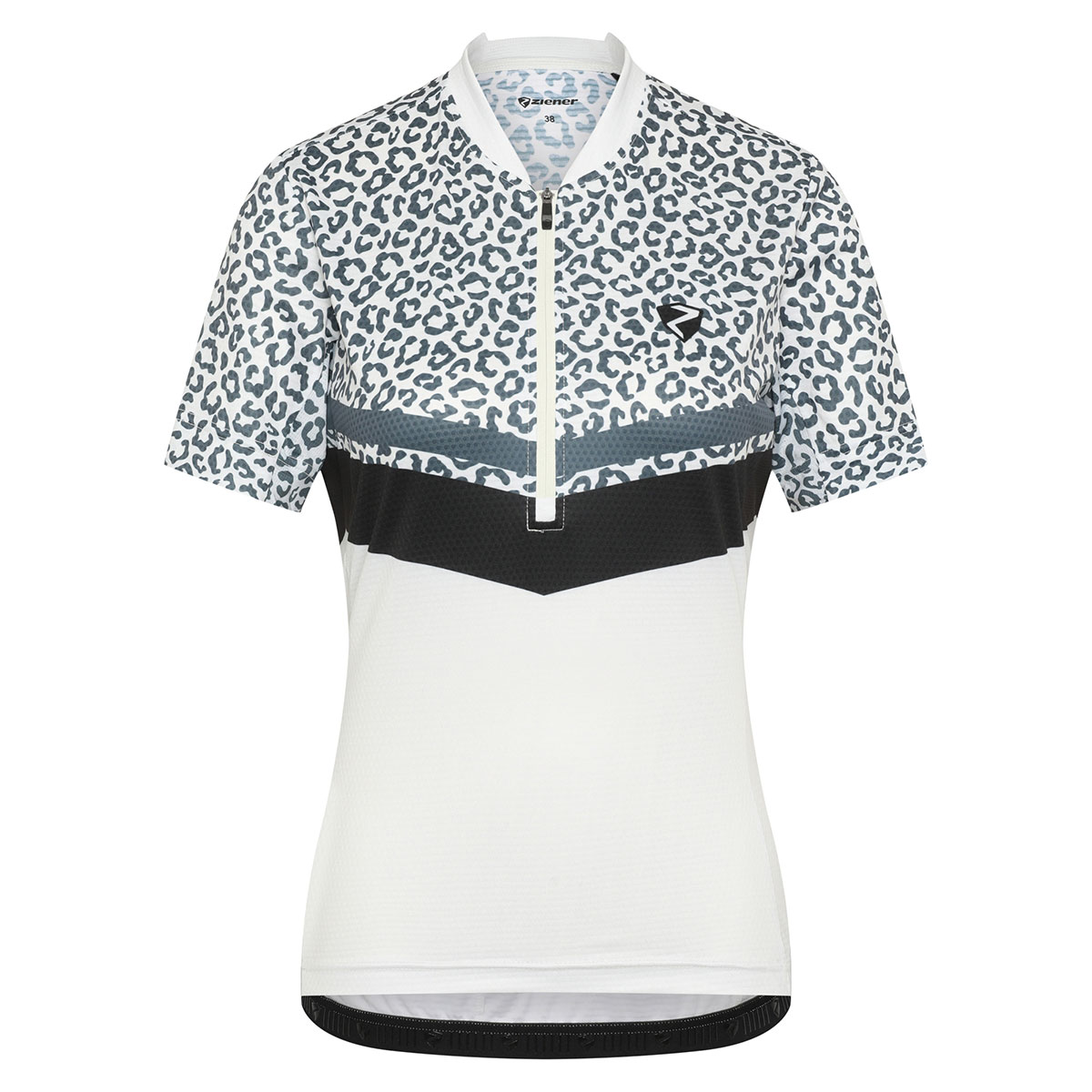 Das funktionelle ZIENER Damen Fahrradtrikot NALADIA-Z LADY mit halbem Front-Reißverschluss besitzt Mesh-Einsätze an den Seiten und unter den Ärmeln für optimale Belüftung. Die Silikonbeschichtung am Saum sorgt für perfekten Halt und der schnelltrocknende, elastische Stoff mit zusätzlich elastischen Nähten bieten höchste Performance. Die 3er Rückentasche sowie eine Reißverschlusstasche bieten genügend Platz für persönliche Utensilien. Der modische Allover-Sublimationsdruck sorgt für Style auf dem Bike.
