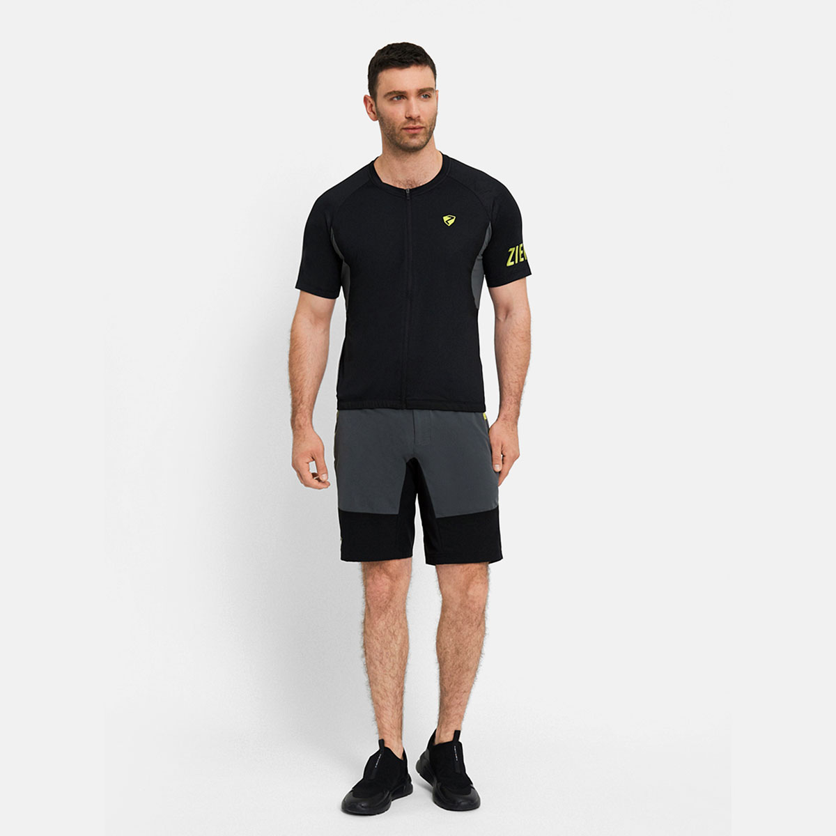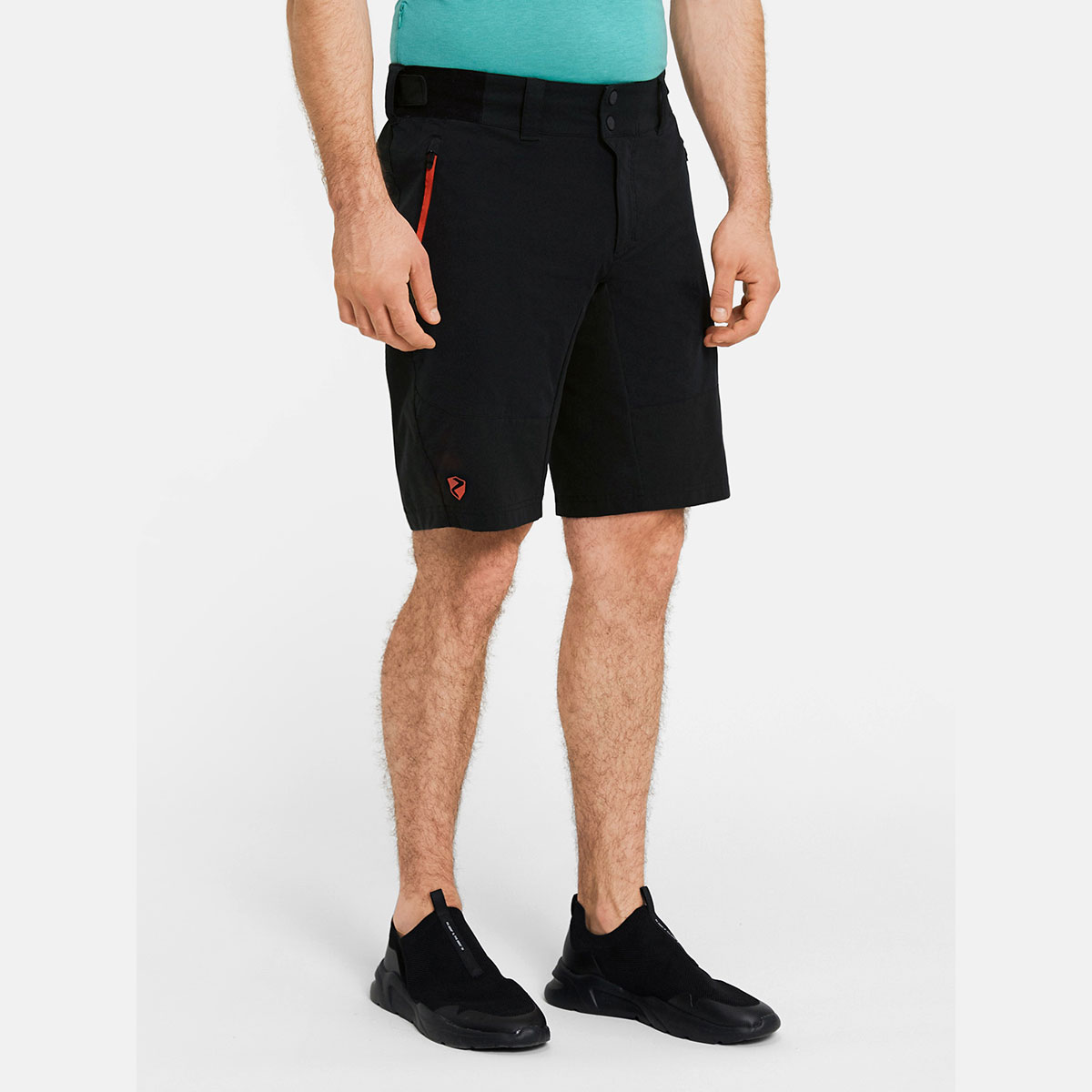 Die funktionelle, elastische ZIENER Herren Shorts NIANDO-Z MAN ist dank des 4-Wege-Stretch-Materials flexibel und passt sich allen Bewegungen perfekt an. Der Bund ist durch einen Klettverschluss weitenregulierbar und hat zusätzlich Gürtelschlaufen. Die Shorts verfügt über zwei Eingriffstaschen mit Reißverschluss und eine nahtfeine Reißverschlusstasche – somit ist genügend Stauraum vorhanden. Der elastische Einsatz hinten sorgt für zusätzlichen Tragekomfort. Die Innenbeinlänge beträgt 28 cm.