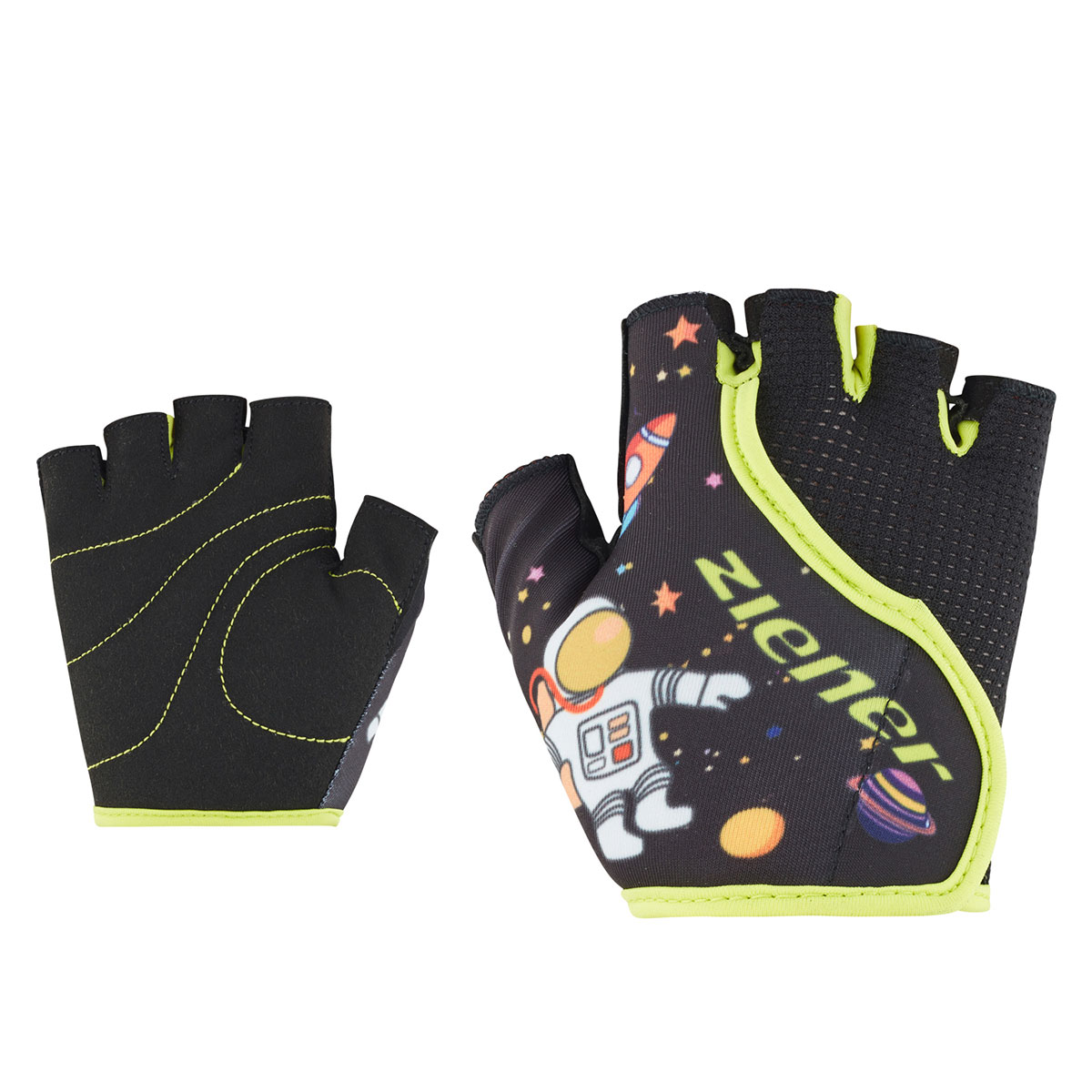 Der ZIENER Kinder Fahrradhandschuh CLAUDI-Z JUNIOR besitzt ein großer Klettverschluss auf der Oberseite für einfaches Anziehen. Die integrierten Fingerschlingen sorgen für einfaches und schnelles Ausziehen der Handschuhe möglich ist. Durch das strapazierfähige, lederähnliche AMARA Innenhandmaterial mit atmungsaktiven Eigenschaften kommen die Hände auch bei längeren Touren nicht ins Schwitzen. Besonderen Komfort bietet die vollflächig gepolsterte Innenhand. Das bunte Design spricht die Kleinsten an – für viel Spaß auf dem Fahrrad!