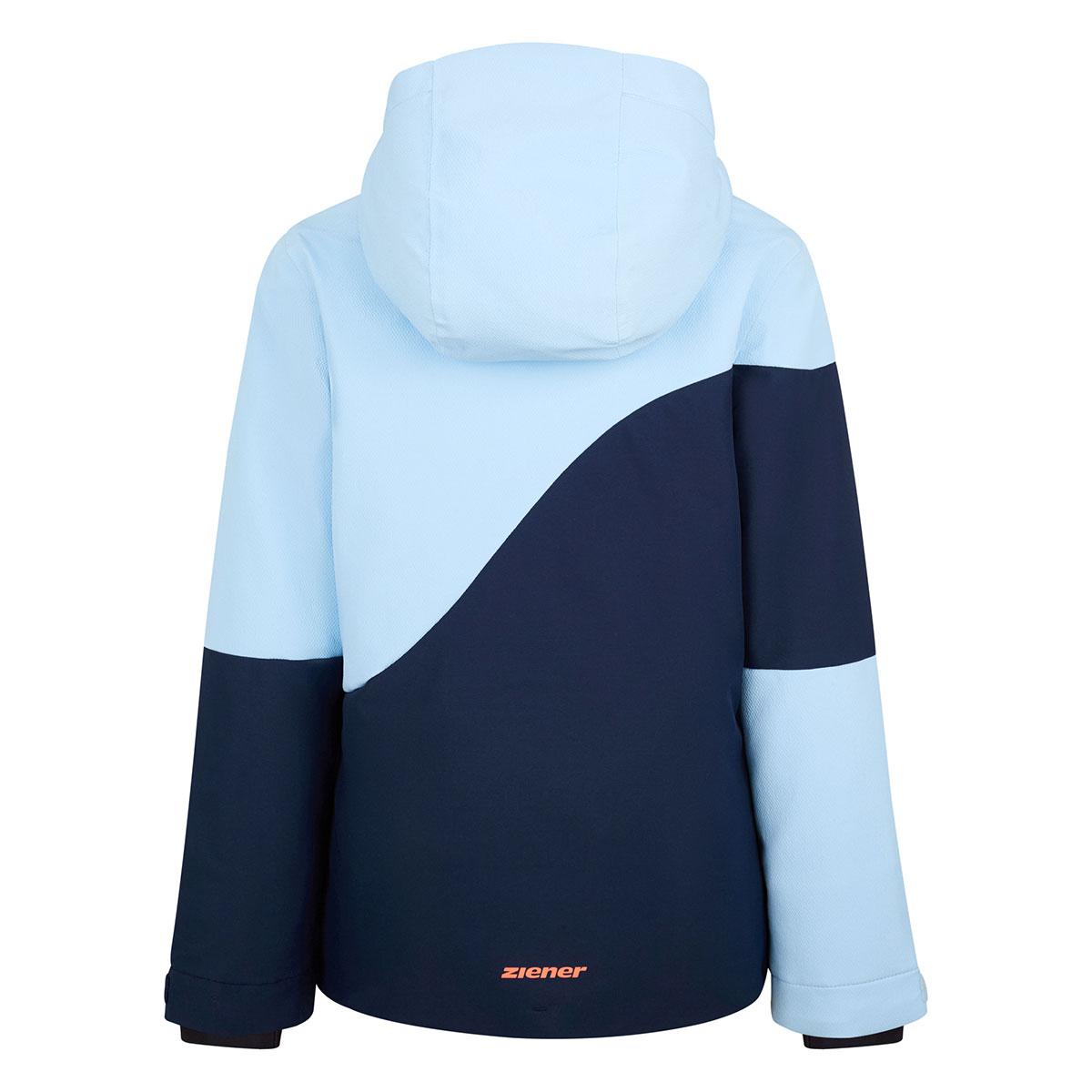 Die funktionelle, wattierte ZIENER Skijacke AVINE-Z JUNIOR für Mädchen hält dank der hochwertigen 120g/m² Wattierung und dem weichen Futter am Rücken und am Kragen bei kaltem Wetter zuverlässig warm. Zudem ist sie mit der atmungsaktiven, wasser- und winddichten ZIENER AQUASHIELD® Membran (Wassersäule 10.000mm/Atmungsaktivität 10.000g/m²/24h) ausgestattet, die für ein warmes und trockenes Klima sorgt. Wärmendes Futter am Rücken und Kragen sorgt für zusätzliche Isolierung und weiche, elastische Ärmelbündchen garantieren einen perfekten Sitz. Die wichtigsten Nähte sind verschweißt. Die Jacke punktet außerdem mit Taschen für Skibrille, Skipass, zwei weiteren Eingriffstaschen mit Reißverschluss sowie einem Schneefang. Des weiteren ist sie versehen mit reflektierenden Designelementen. Die Imprägnierung der Jacke ist PFAS-frei. Der Außenstoff ist bluesign® und Standard 100 by OEKO-TEX® zertifiziert. Die Kapuze entspricht der Norm DIN EN 14682 für Sicherheit von Kinderbekleidung.