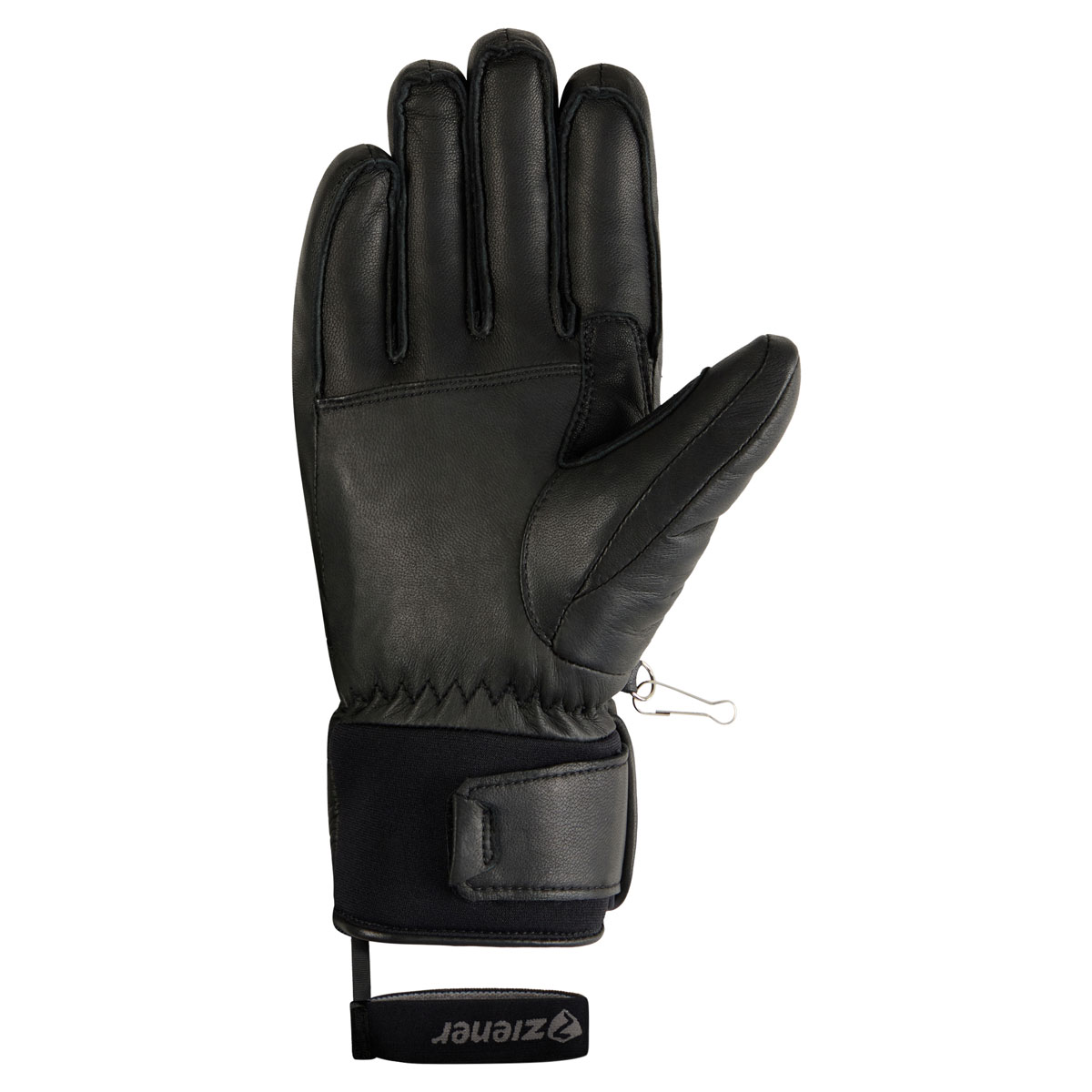 Die sportiven und warmen ZIENER Lederskihandschuhe KANNAH-Z AS® PR LADY halten durch die exzellent wärmende PrimaLoft® Gold Isolierung auch an kalten Tagen wohlig warm. Das zusätzliche Fleecefutter hält die Körpertemperatur stets im Wohlfühlbereich und gewährleistet ein angenehmes Tragegefühl. Die ZIENER AQUASHIELD® Membran sorgt mit ihren wasser- und winddichten Eigenschaften für optimales Klima im Handschuh. Für viel Flexibilität sorgt die hochwertige Ausstattung aus Lammleder. Die weiche Lederinnenhand ist gleichermaßen taktil und robust. Die Stulpe kann mit einem Klettverschluss auf der Innenseite angepasst werden. Die praktische Leash fixiert den Handschuh auch bei schnellem Ausziehen zuverlässig am Handgelenk. Das Produkt enthält nichttextile Teile tierischen Ursprungs.